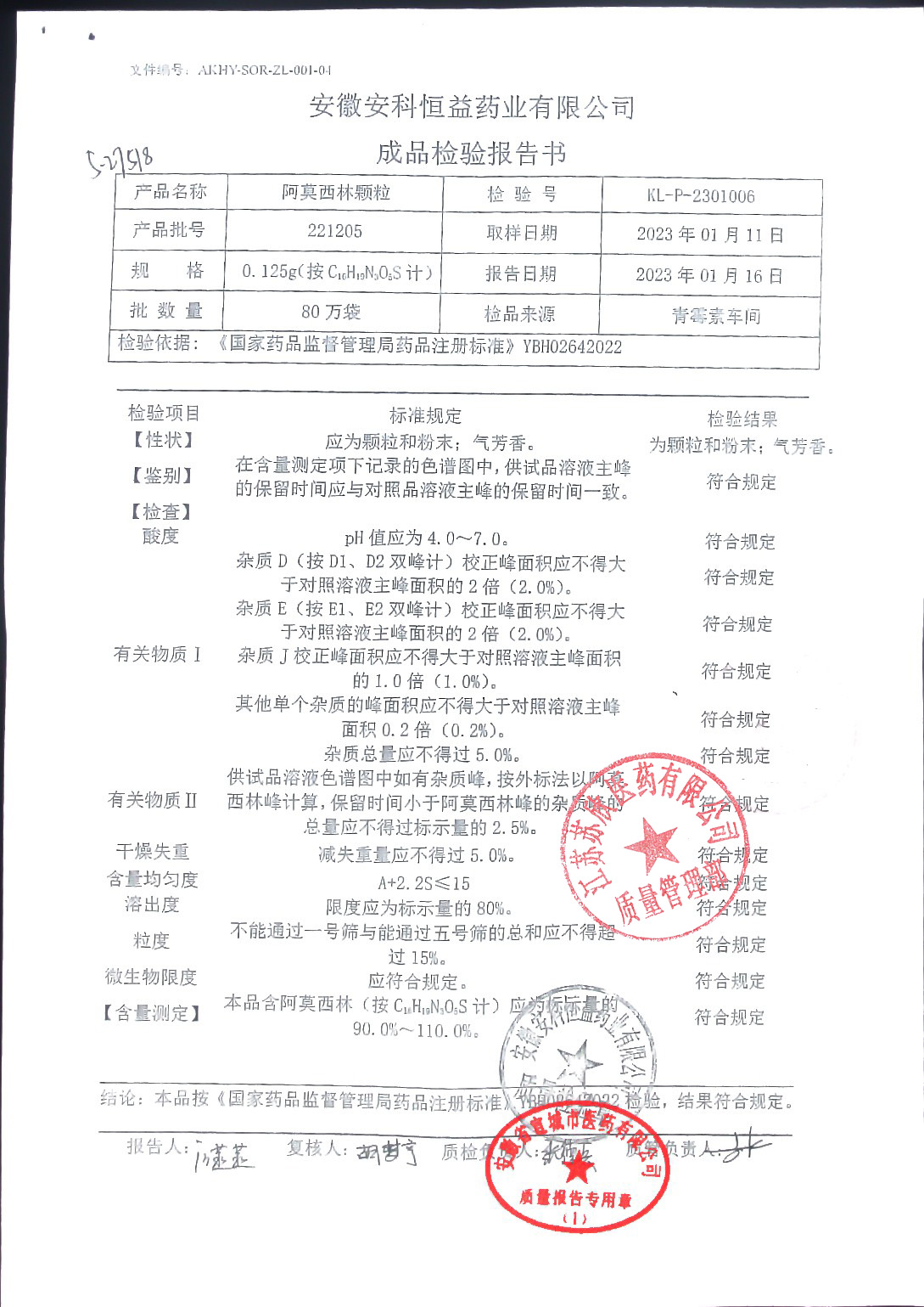 阿莫西林颗粒221205