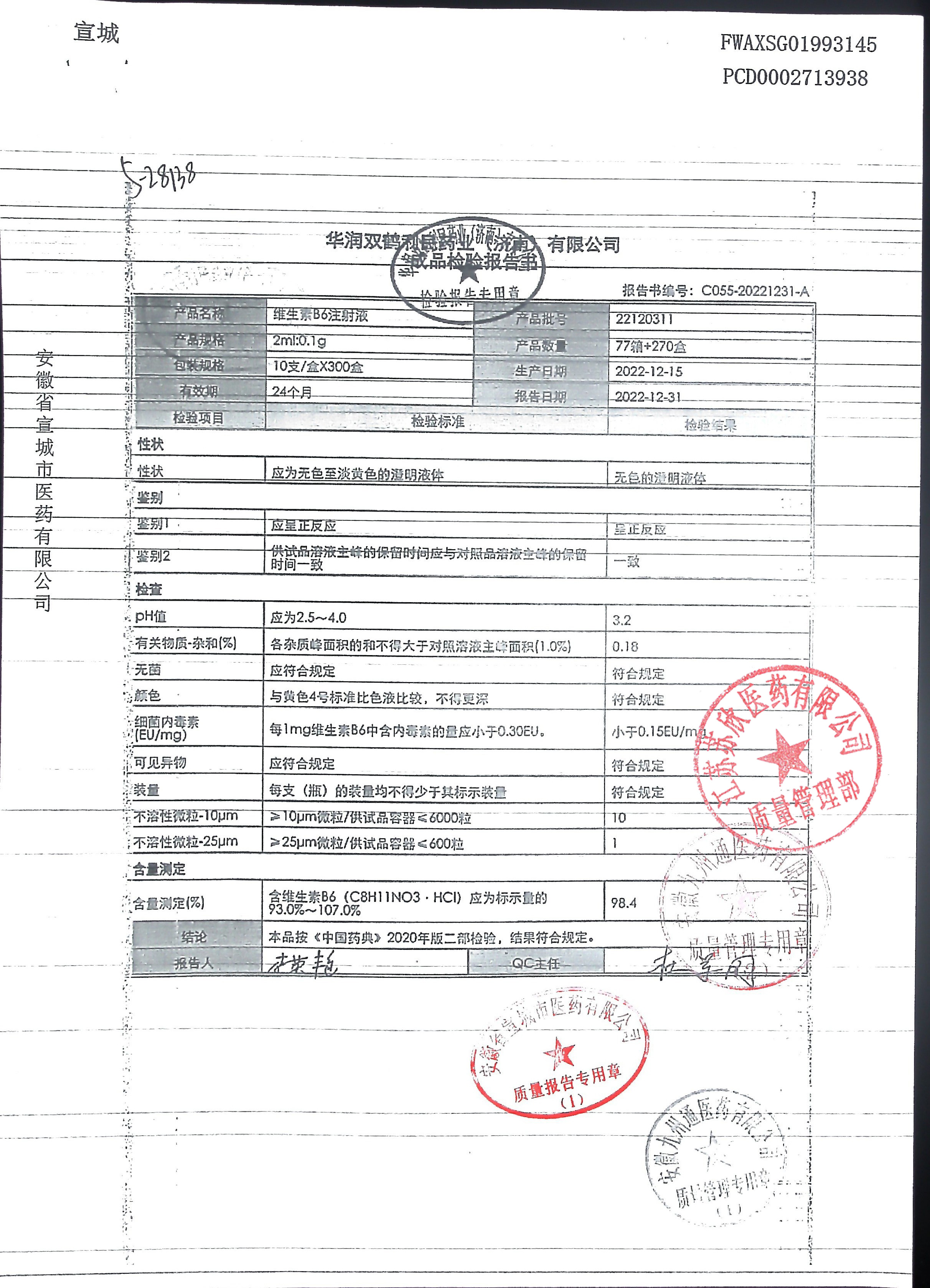 维生素B6注射液22120311