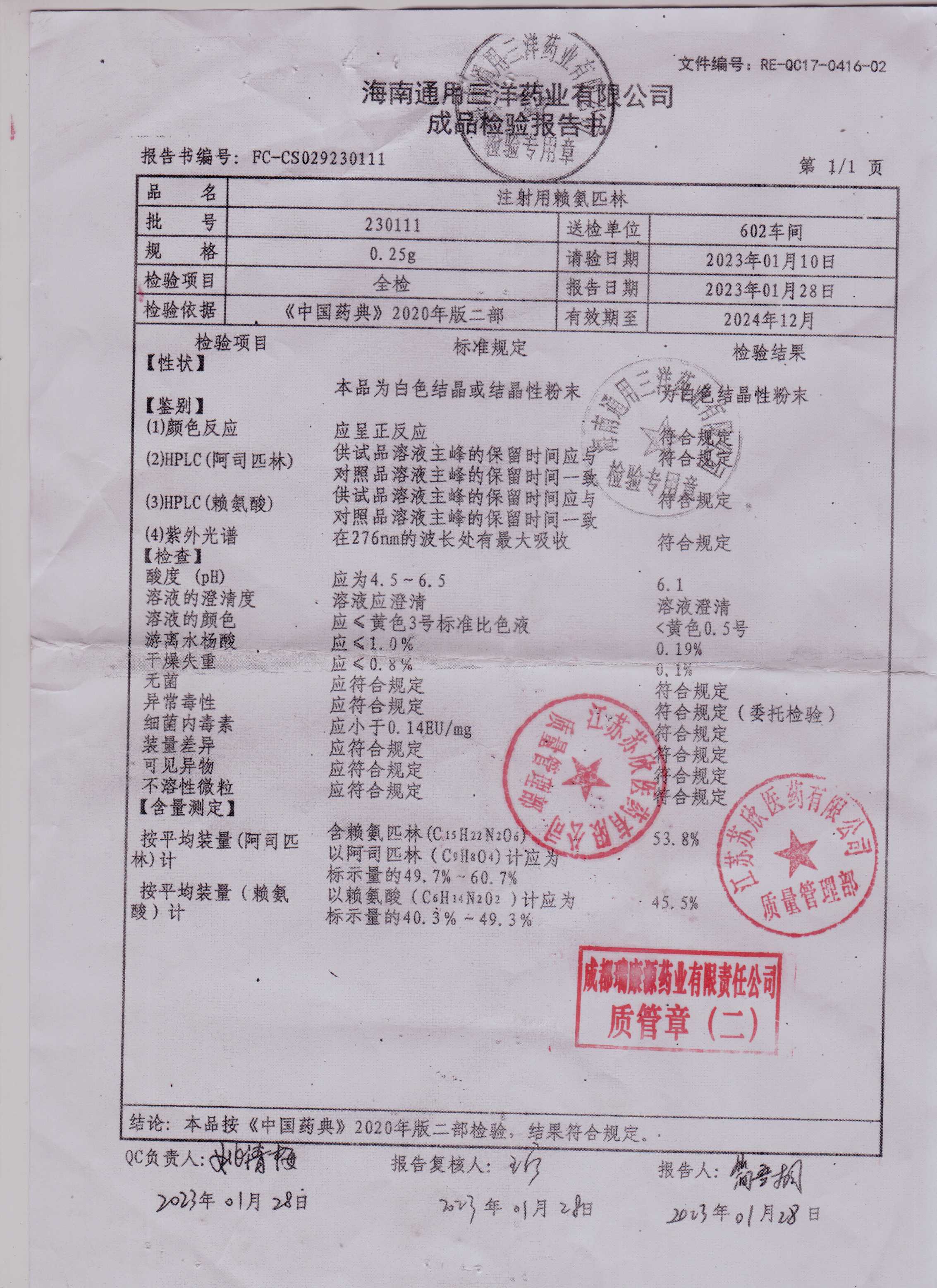 注射用赖氨匹林230111