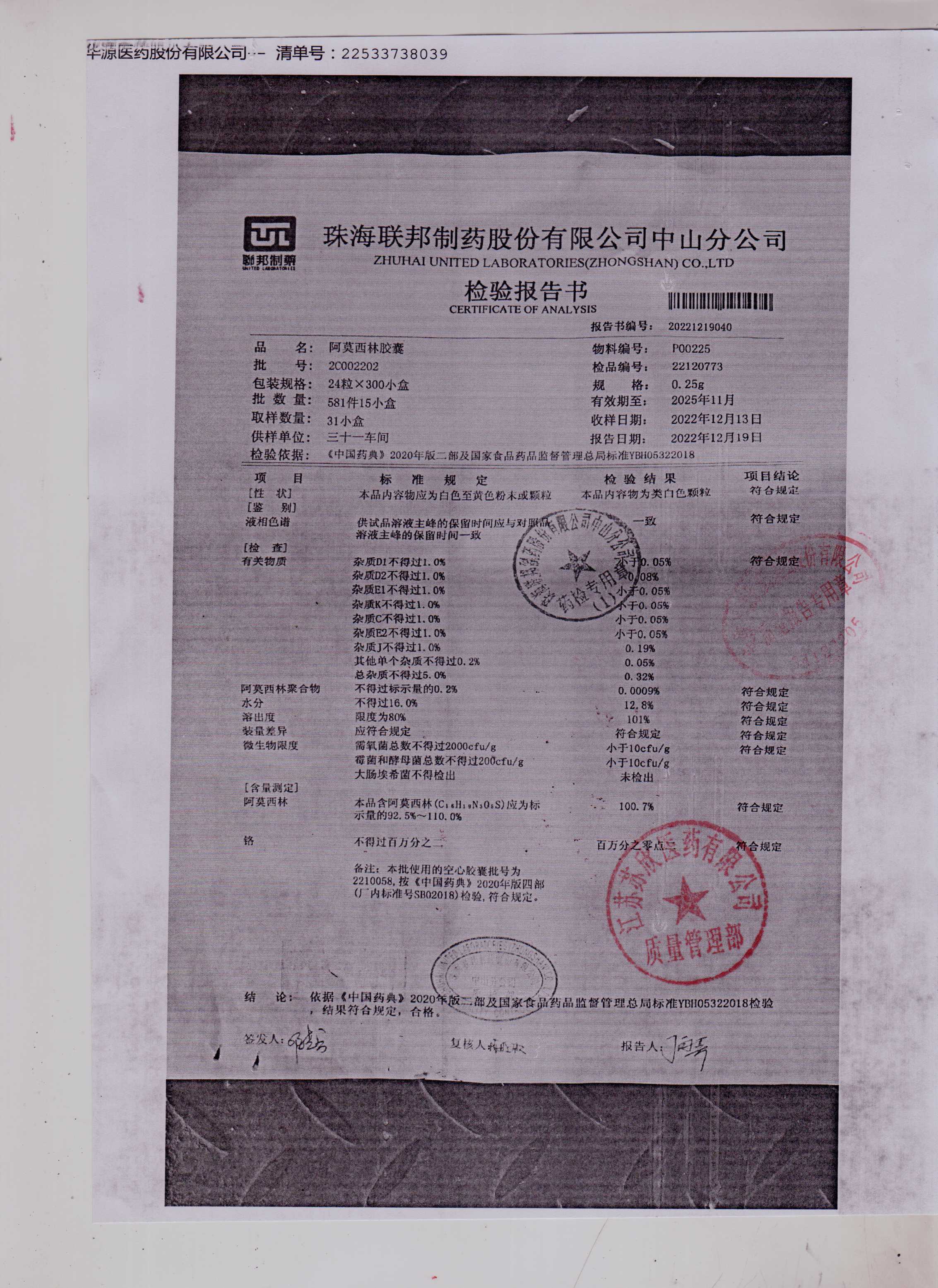 阿莫西林胶囊2C002202