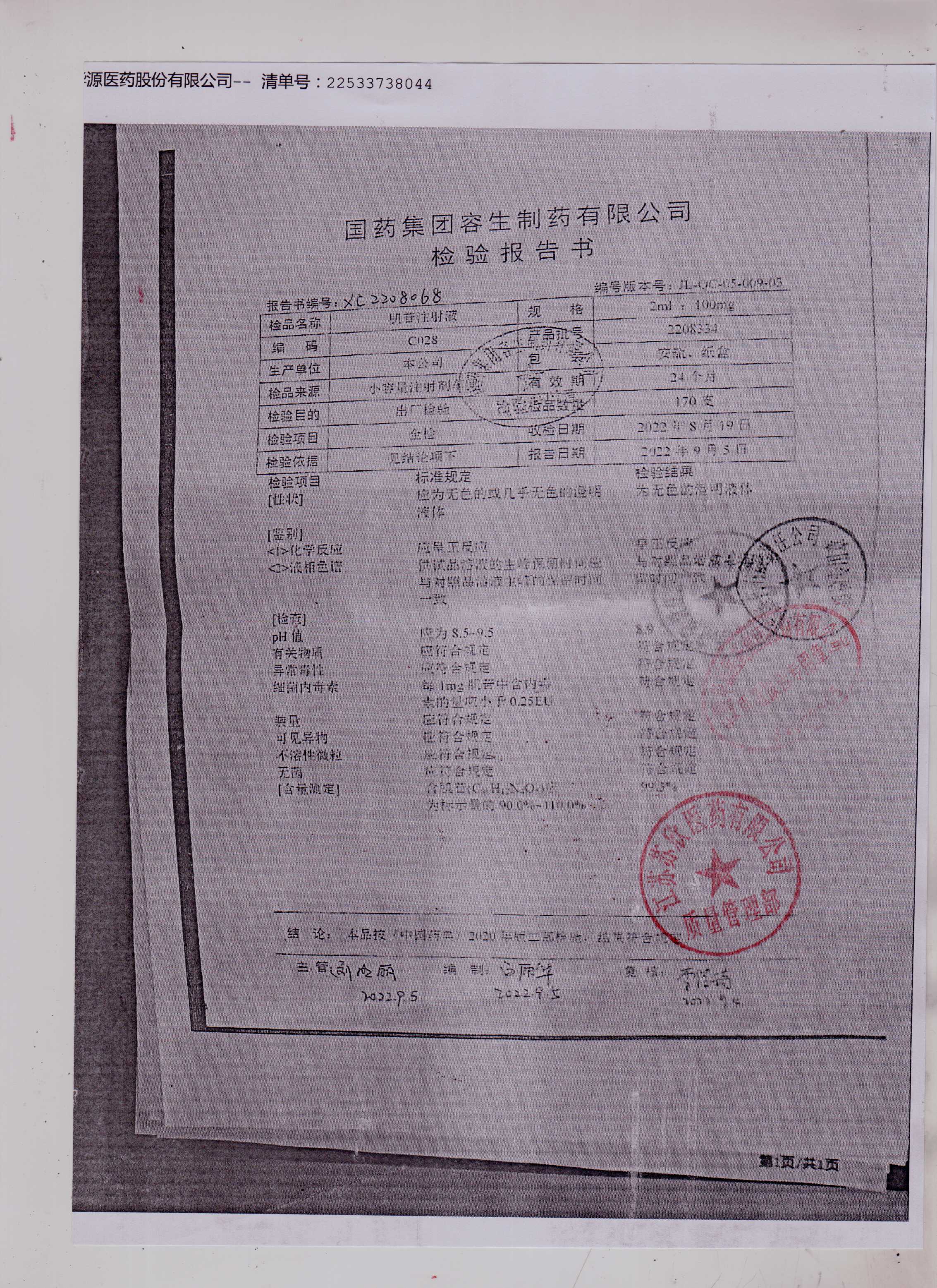 肌苷注射液2208334
