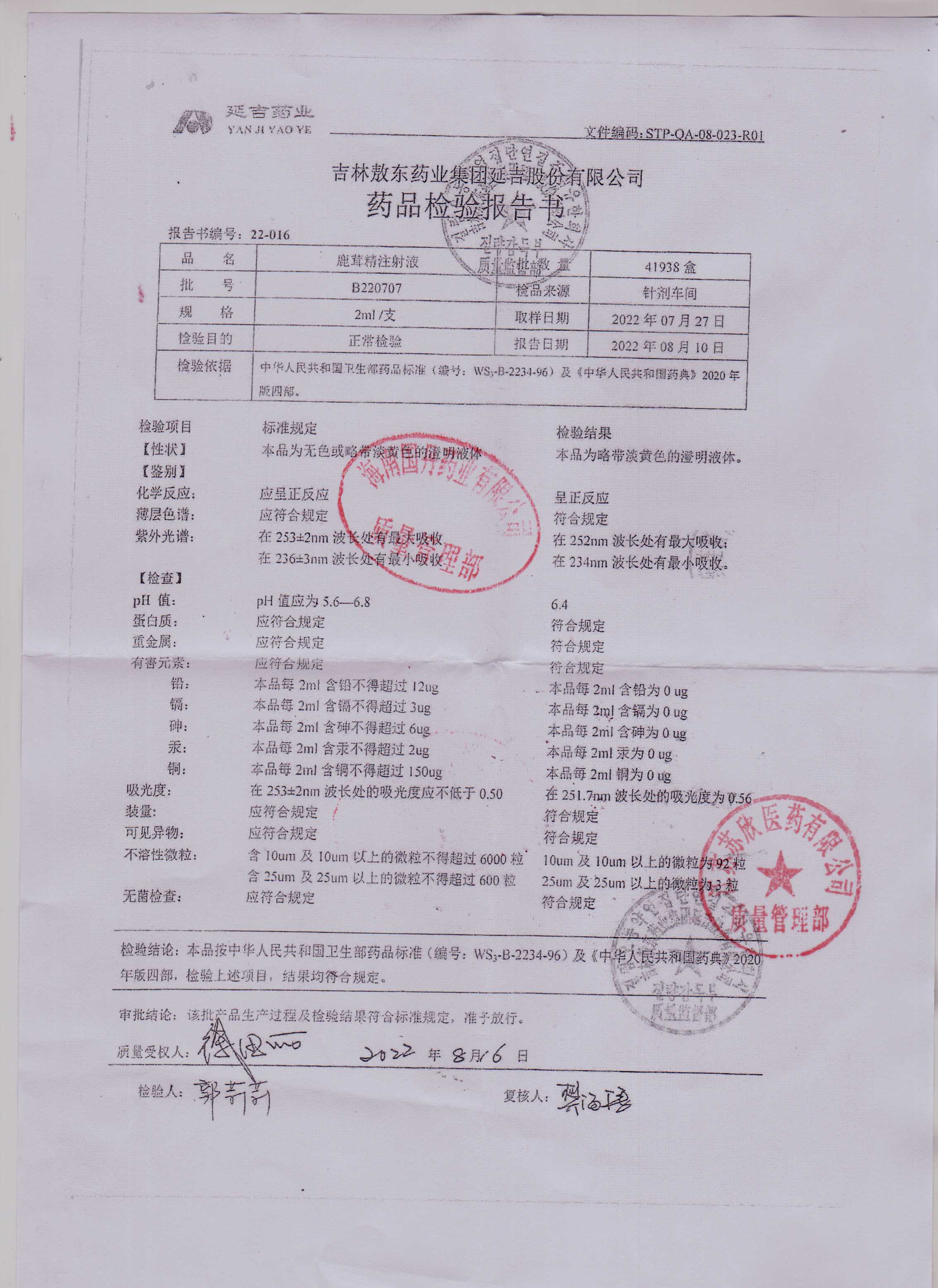 鹿茸精注射液B220707
