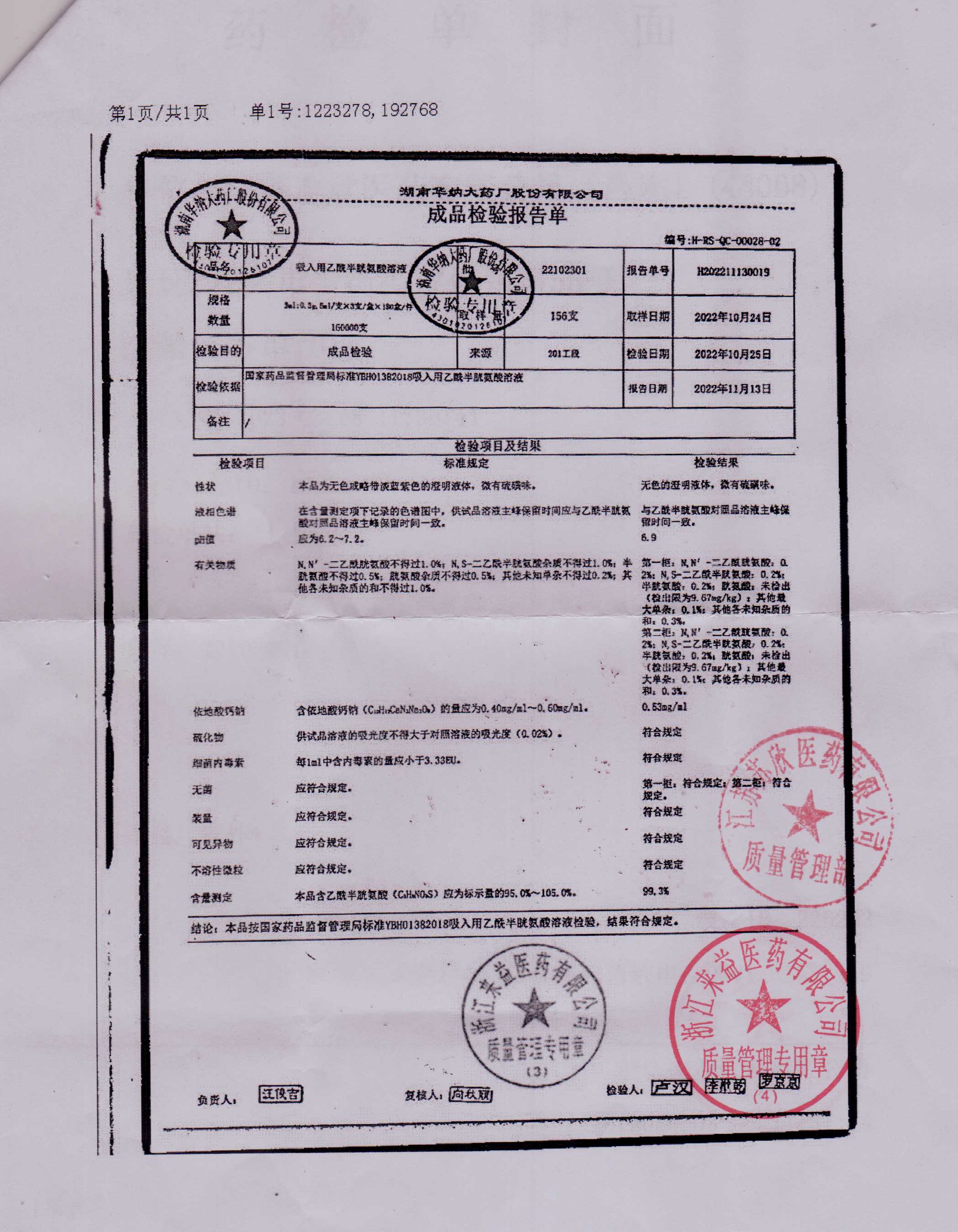 >> 检验报告书 >> 检验报告书