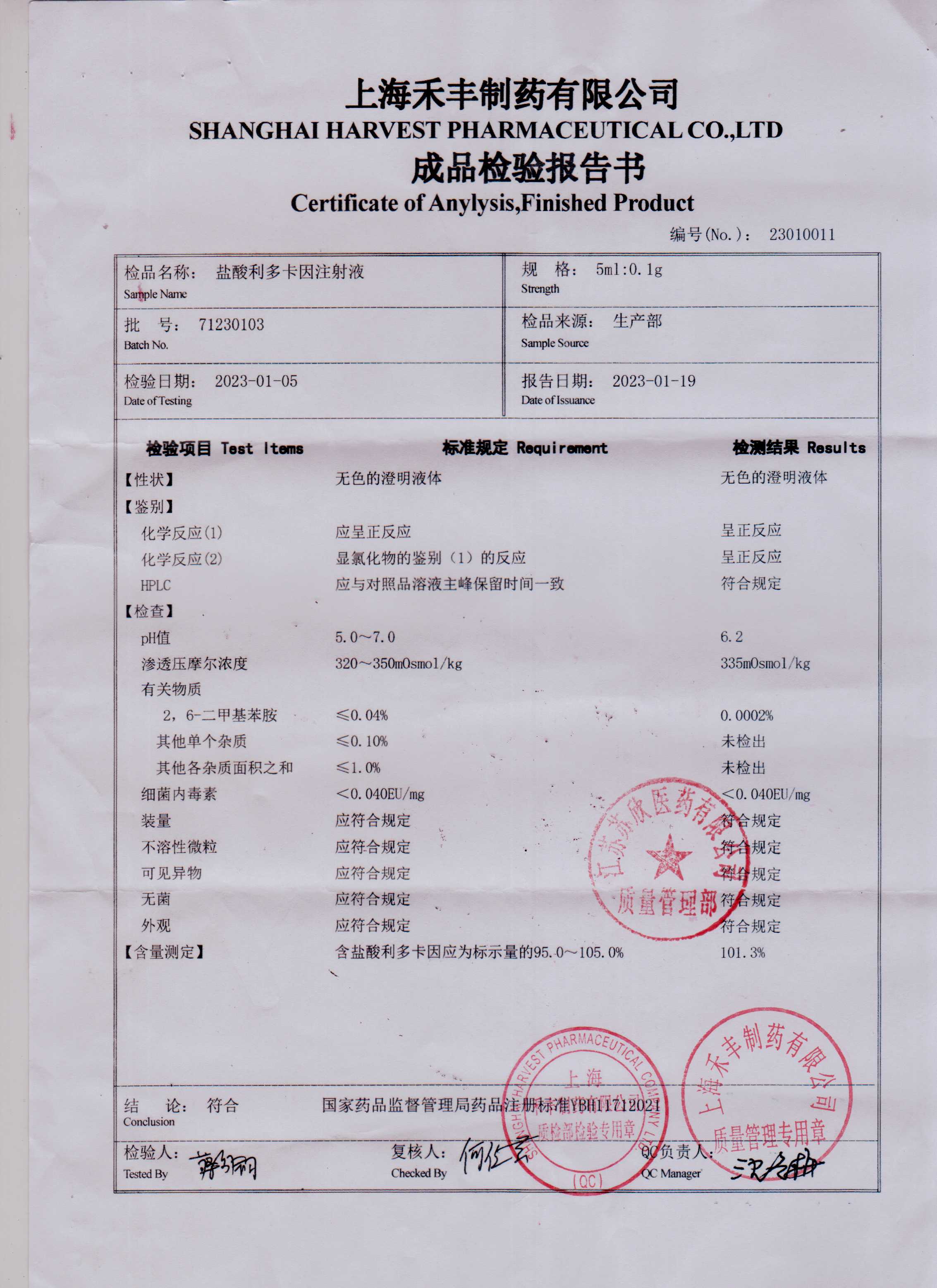 盐酸利多卡因注射液71230103