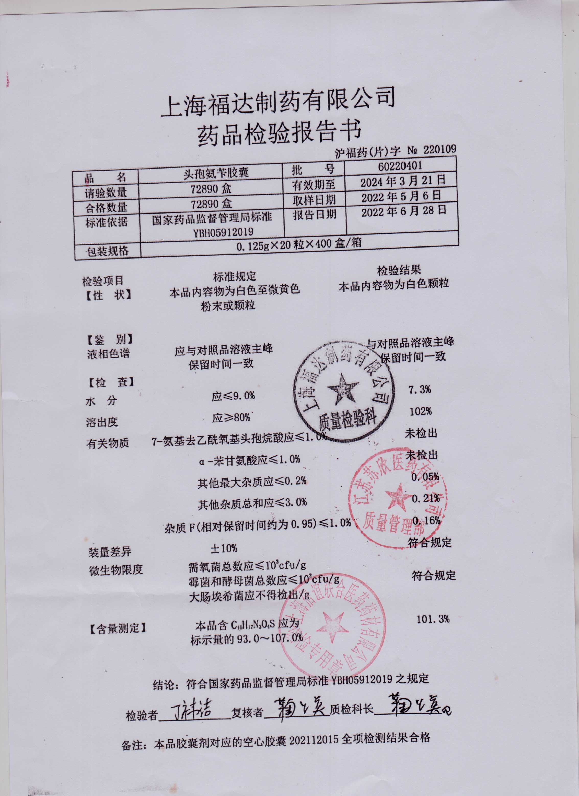 头孢氨苄胶囊60220401