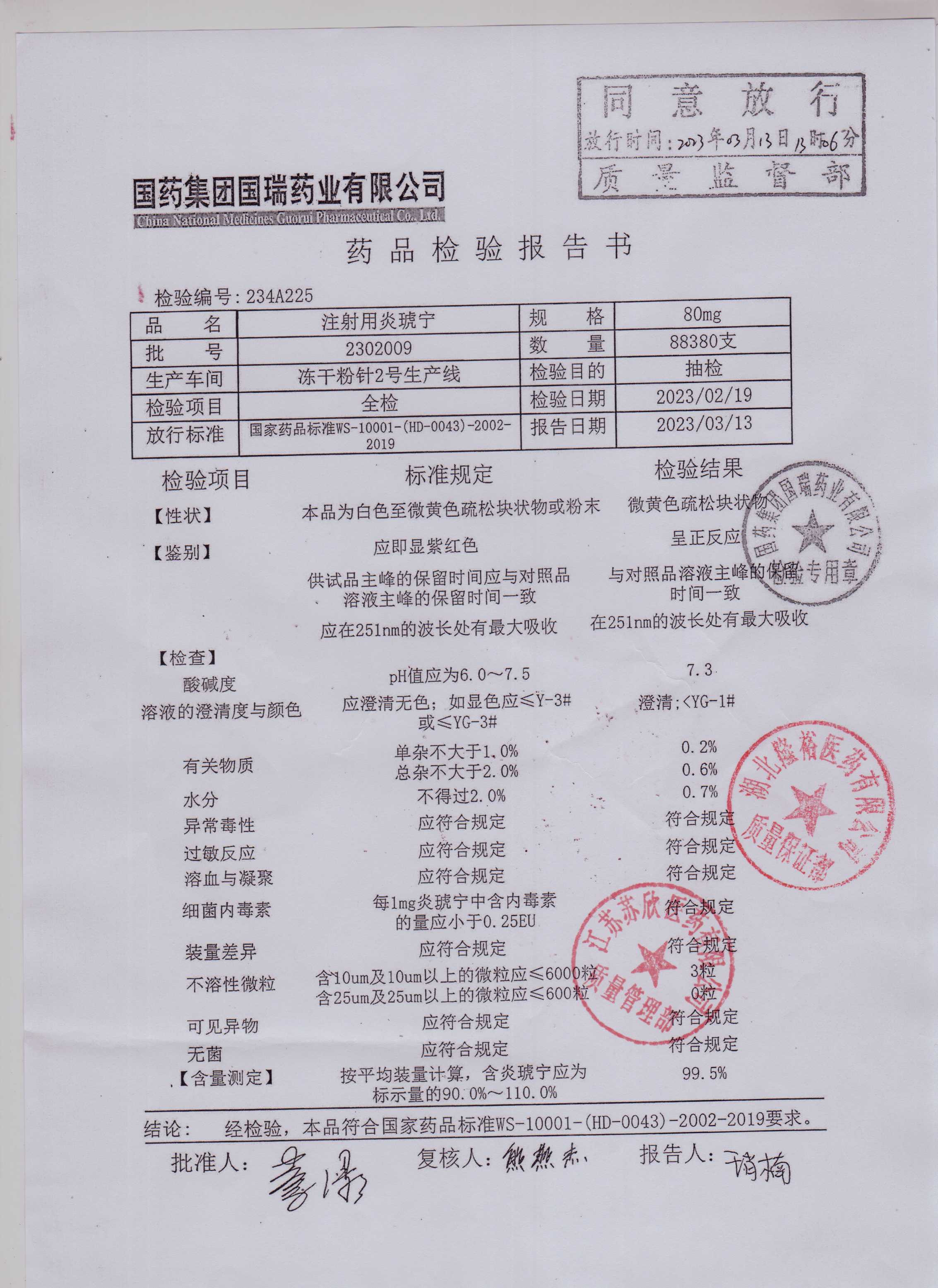 注射用炎琥宁2302009