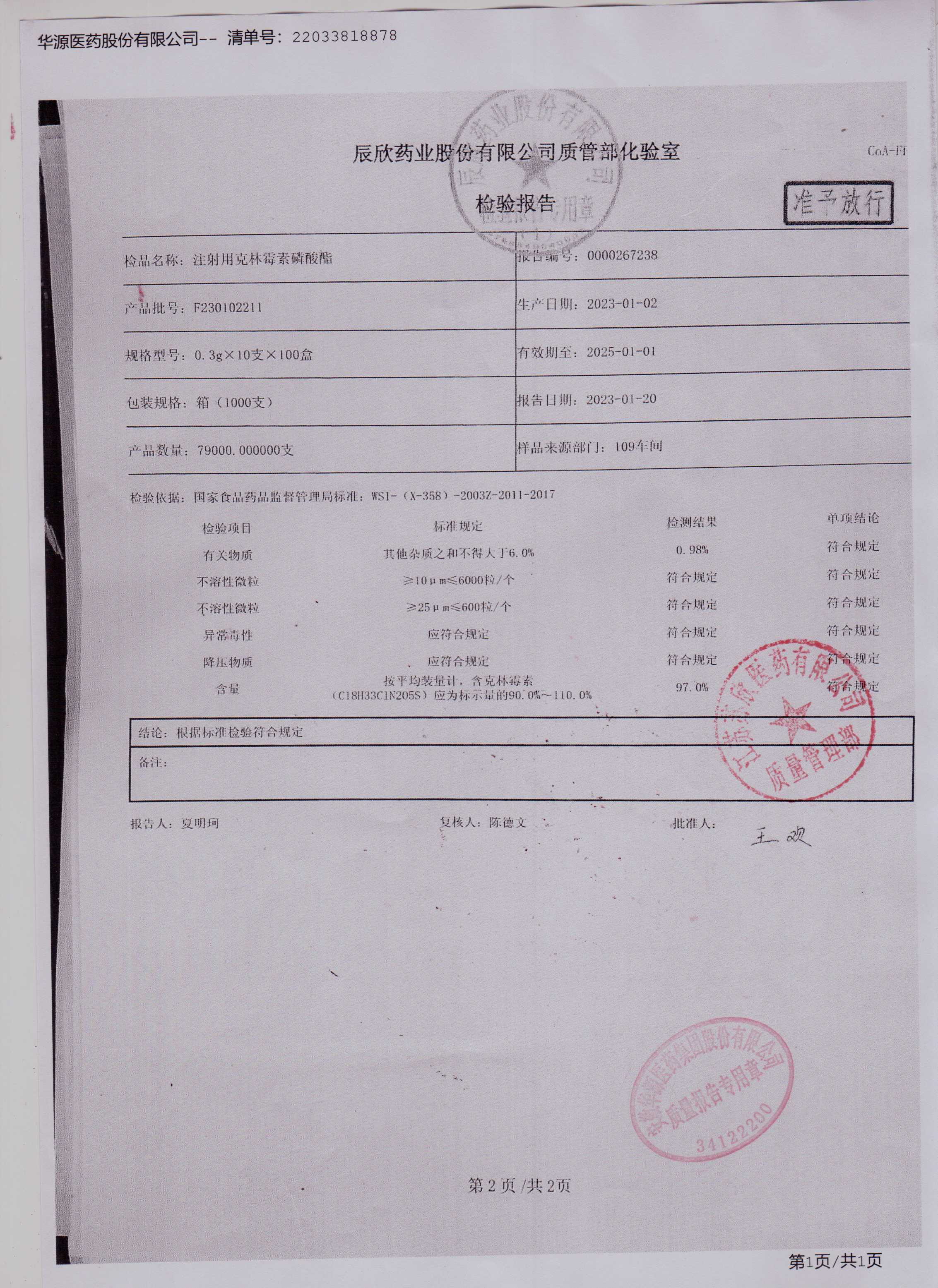 注射用克林霉素磷酸酯F230102211(2)