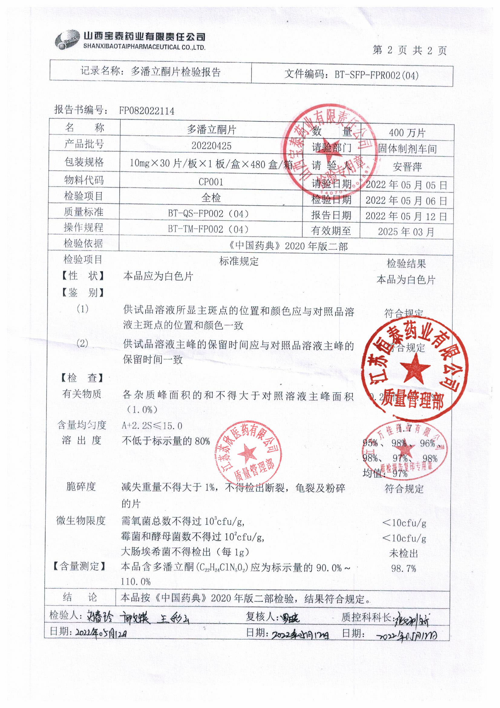 多潘立酮片(宝泰理通)20220425