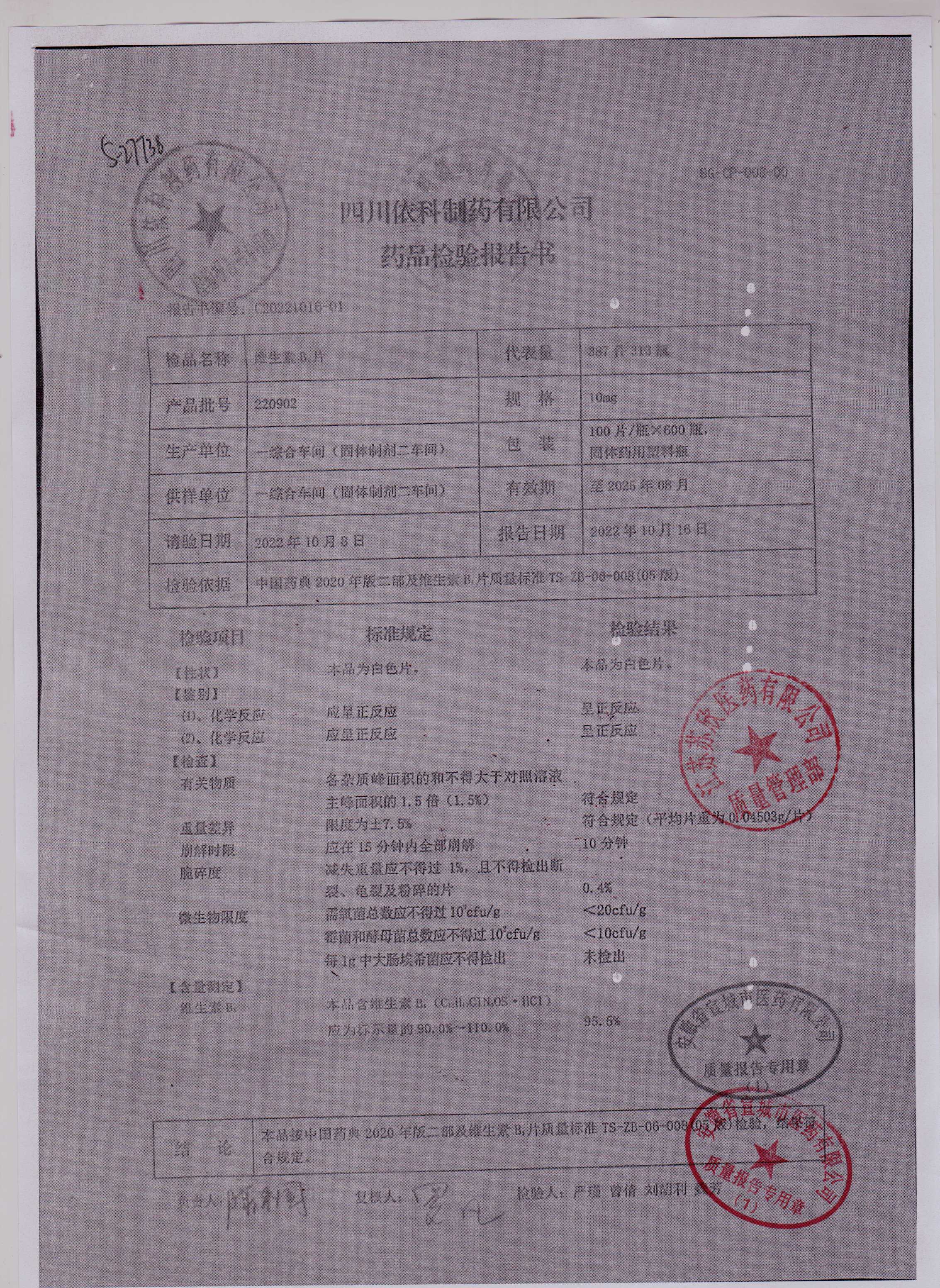 维生素B1片220902