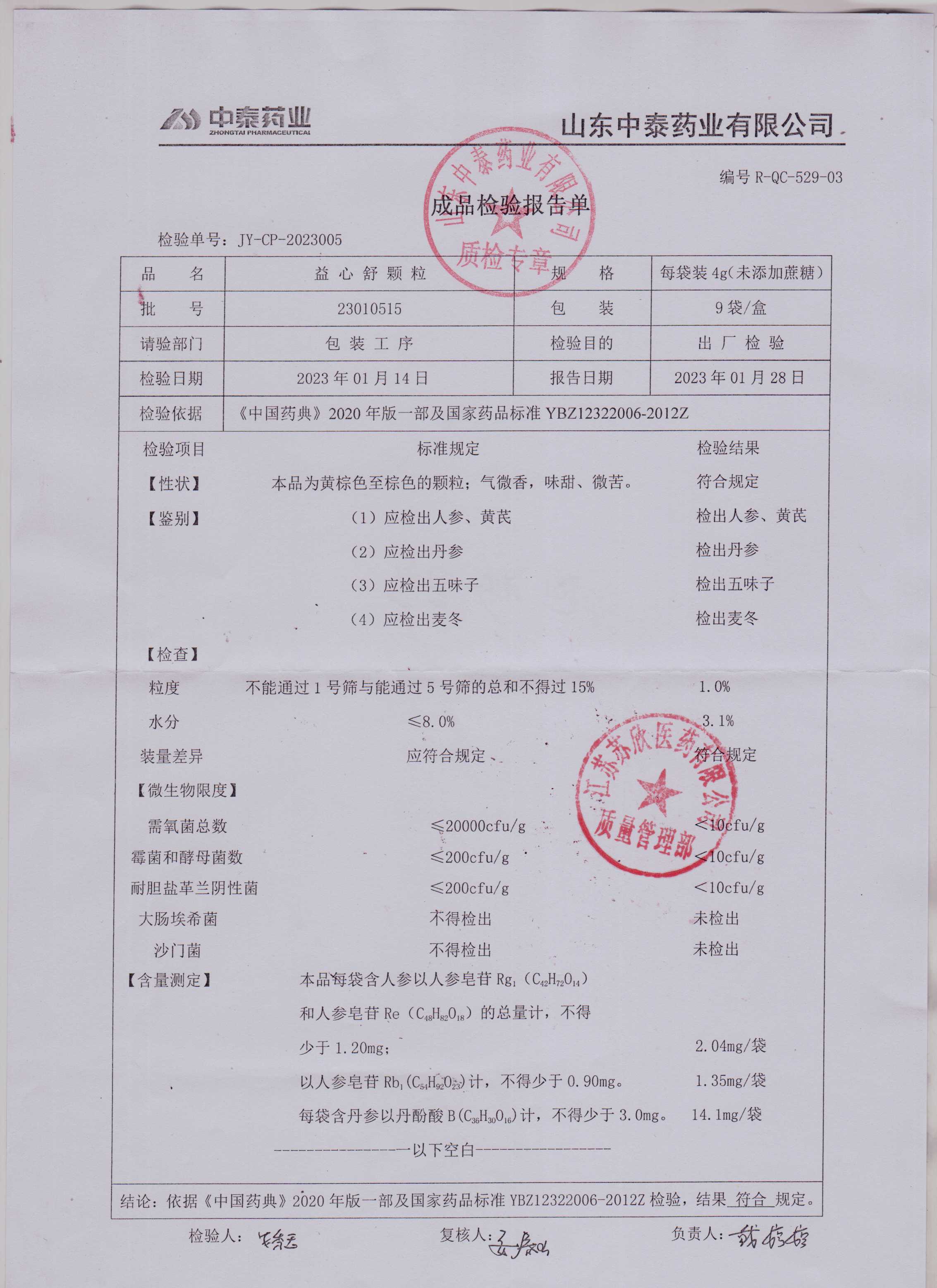 益心舒颗粒23010515
