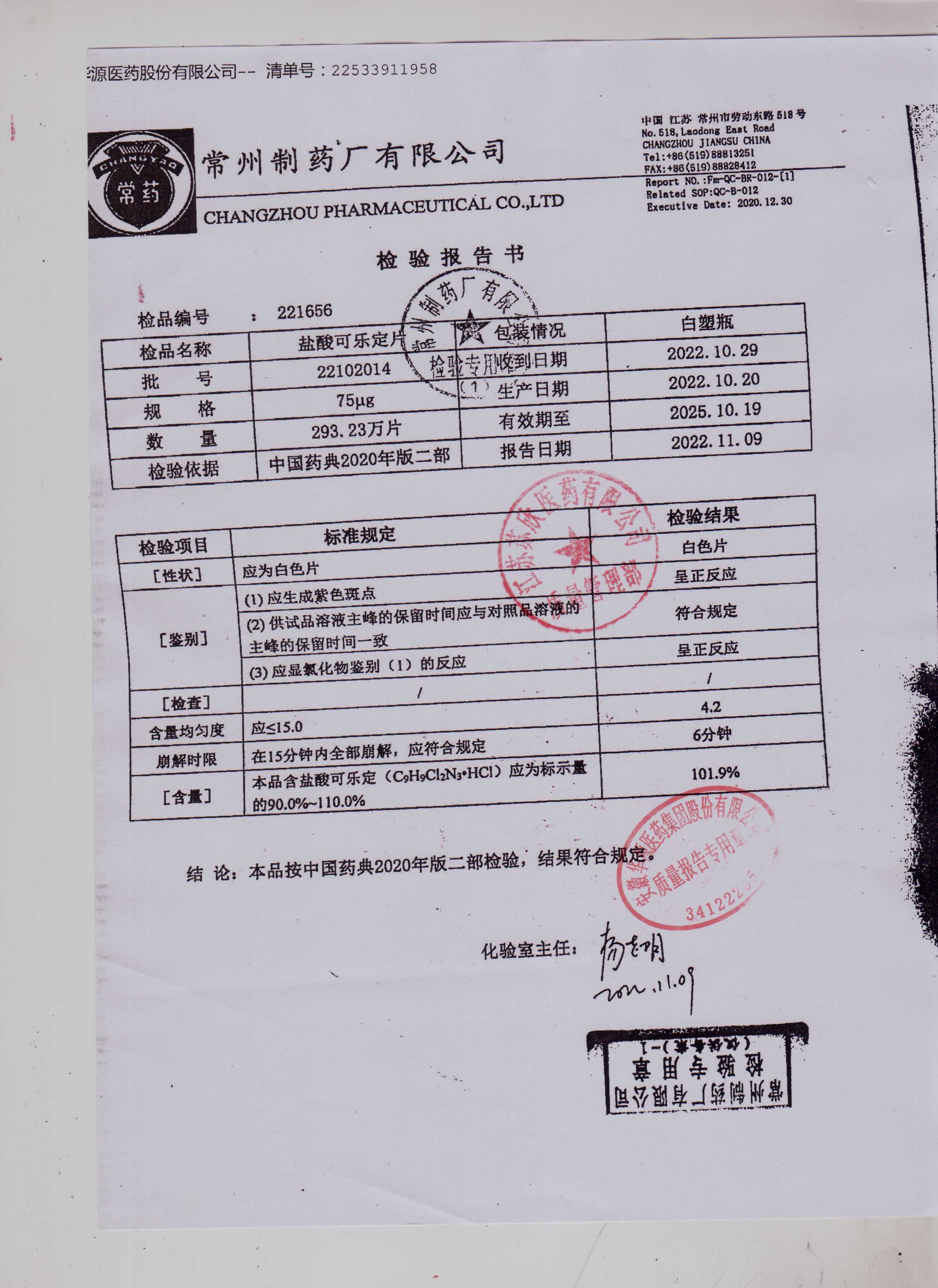 盐酸可乐定片22102014