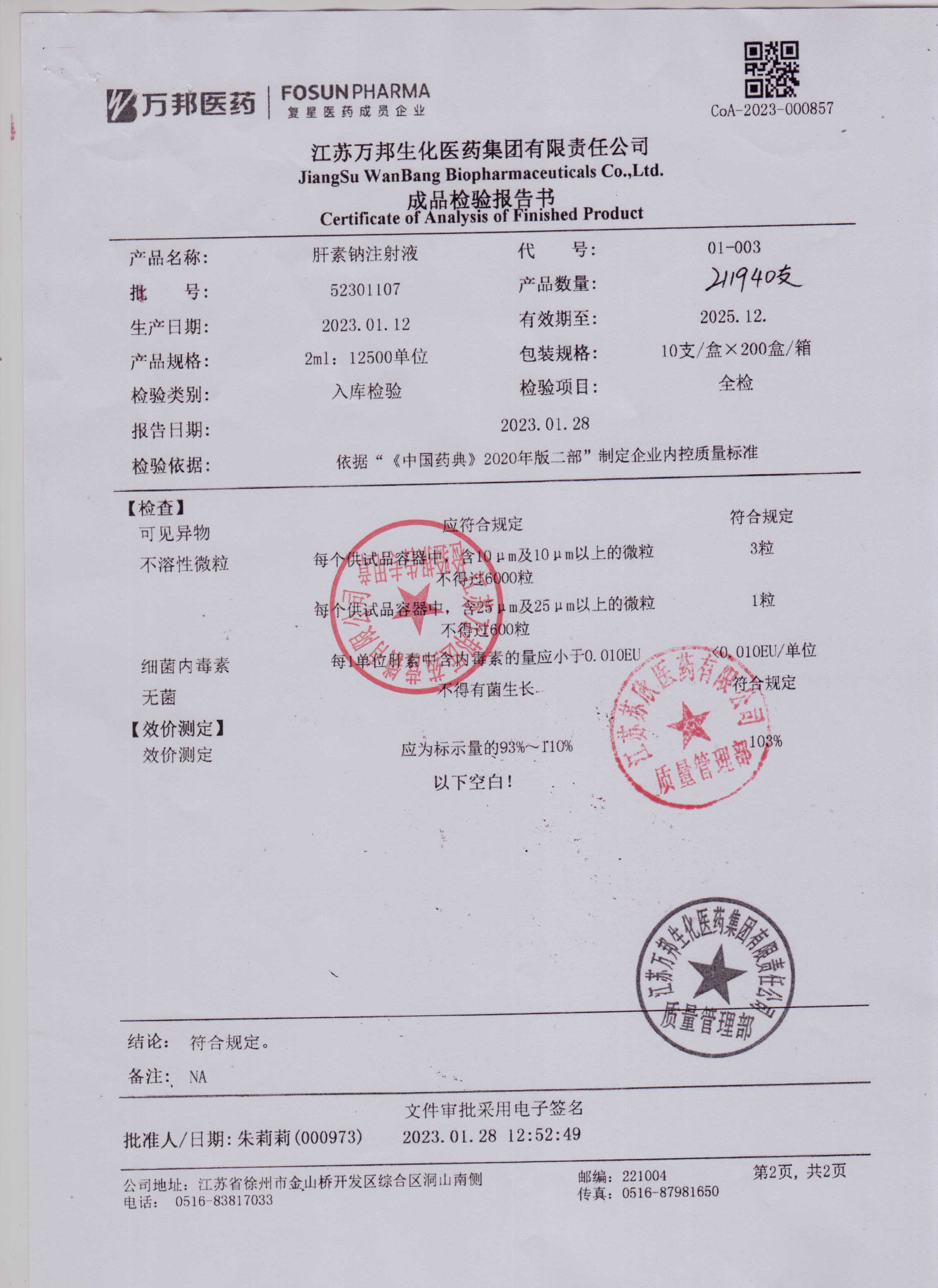 肝素钠注射液52301107(2)