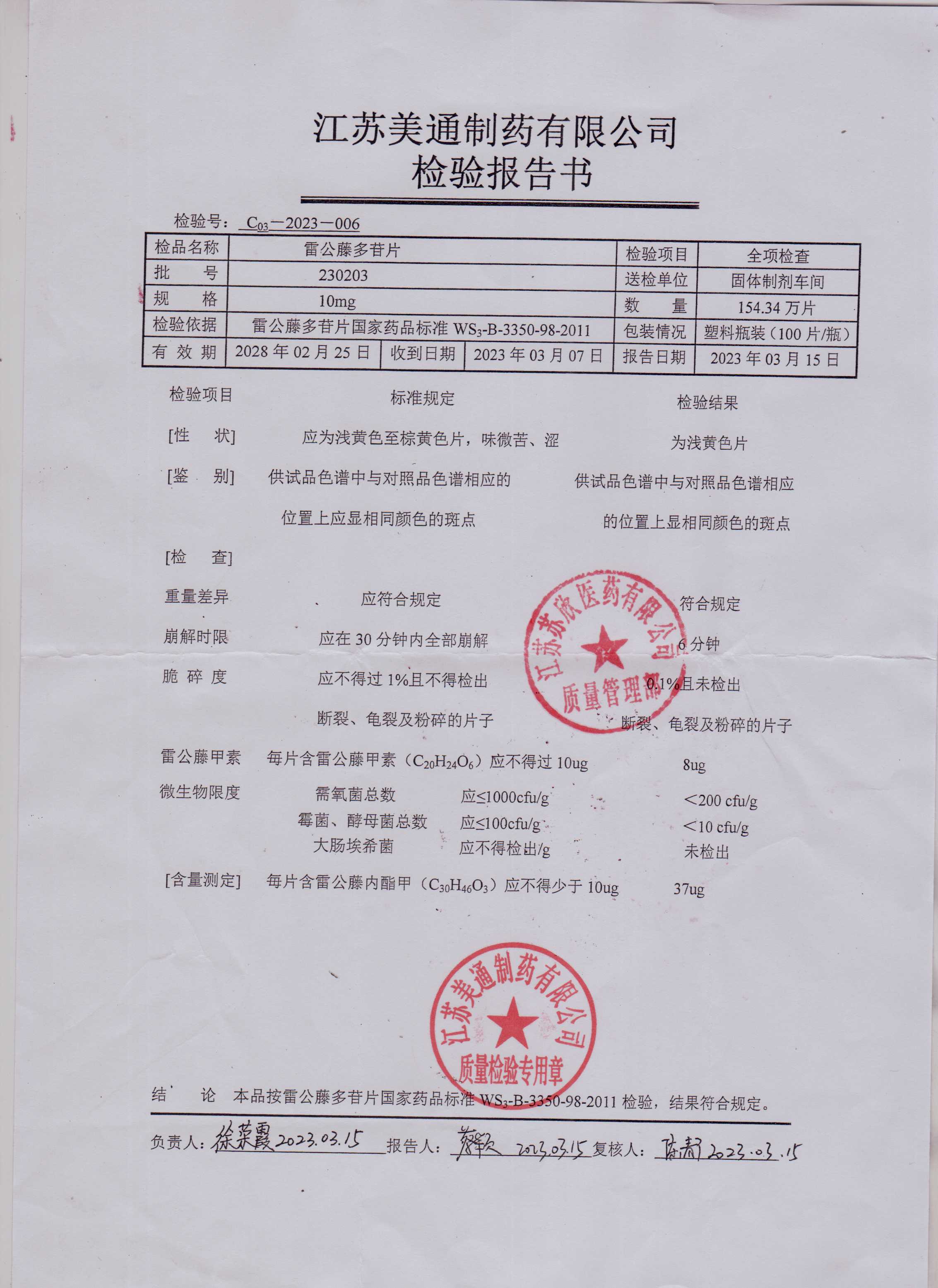 雷公藤多苷片230203