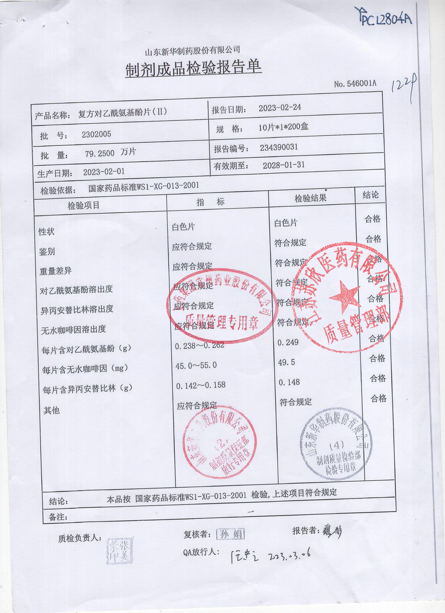 复方对乙酰氨基酚片(II)2302005