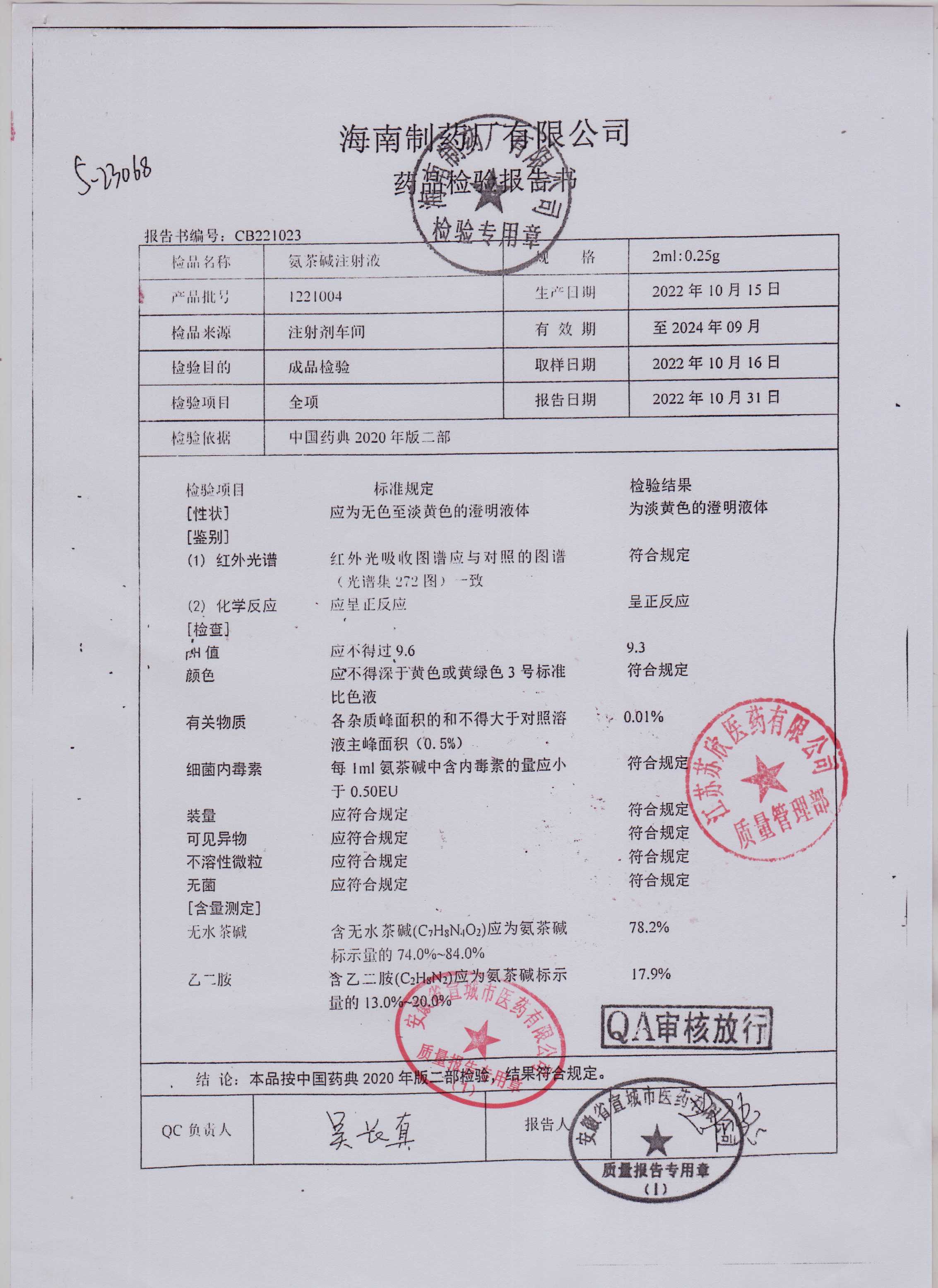 氨茶碱注射液1221004