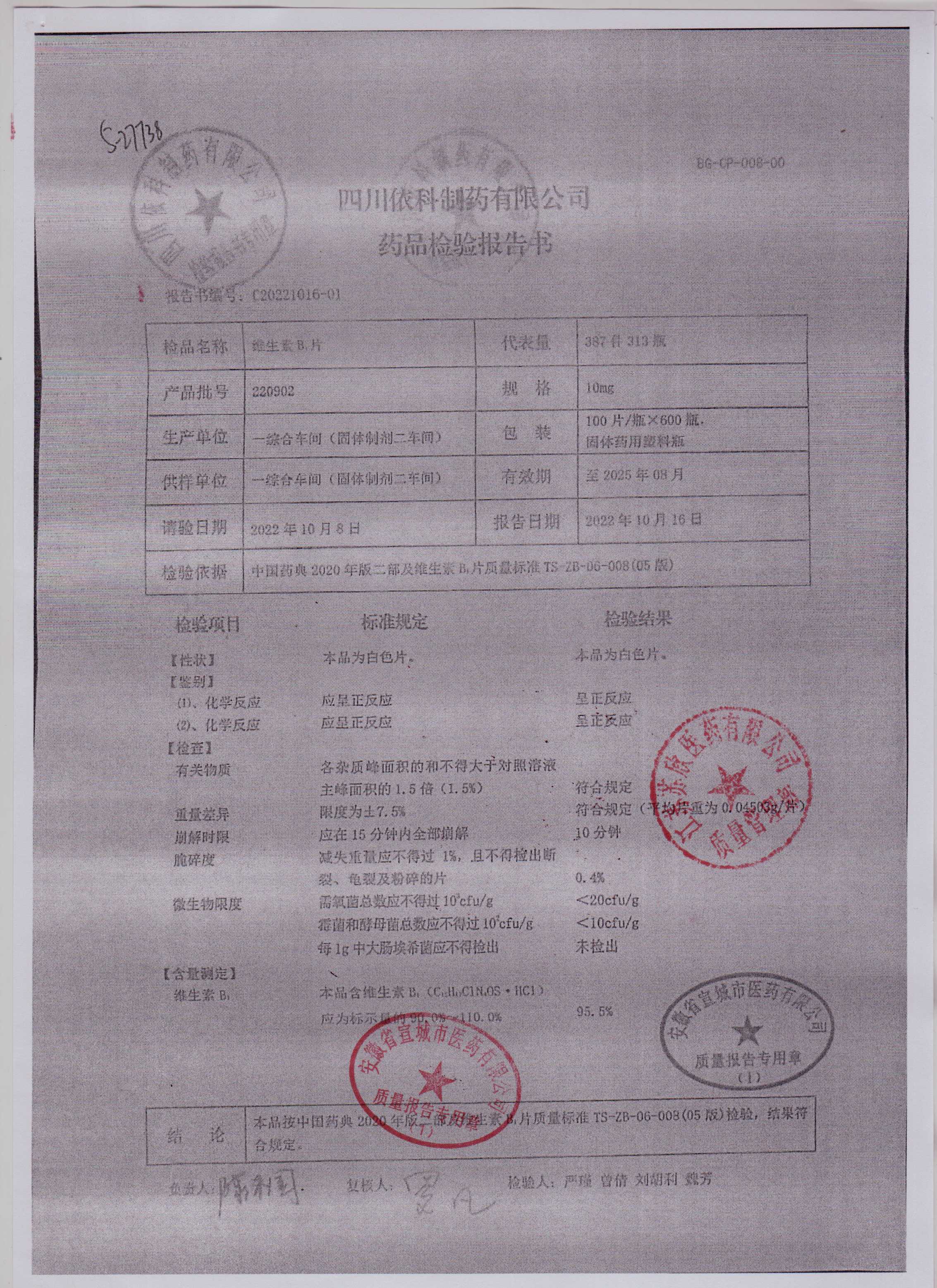 维生素B1片220902