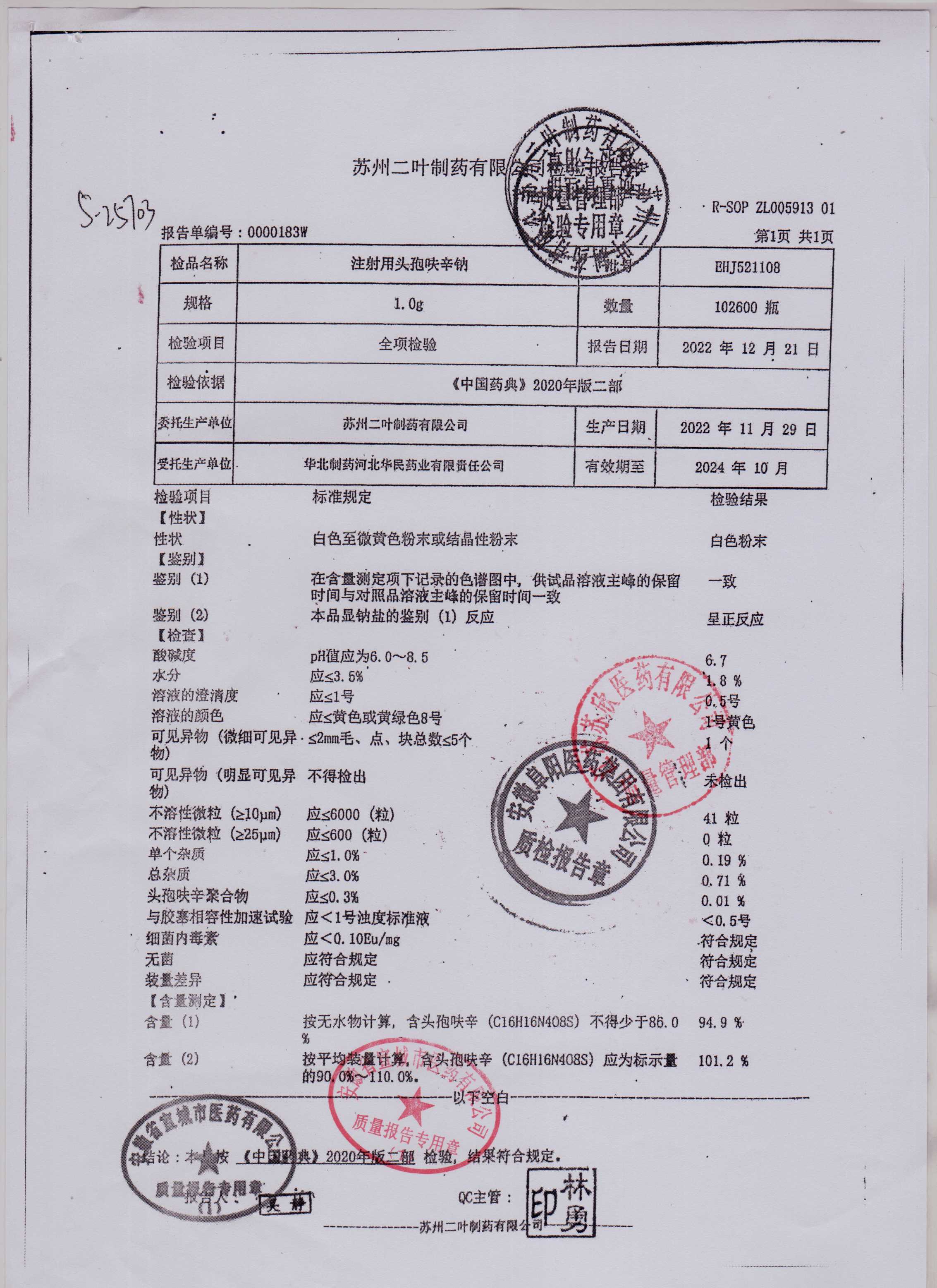 >> 检验报告书 >> 检验报告书