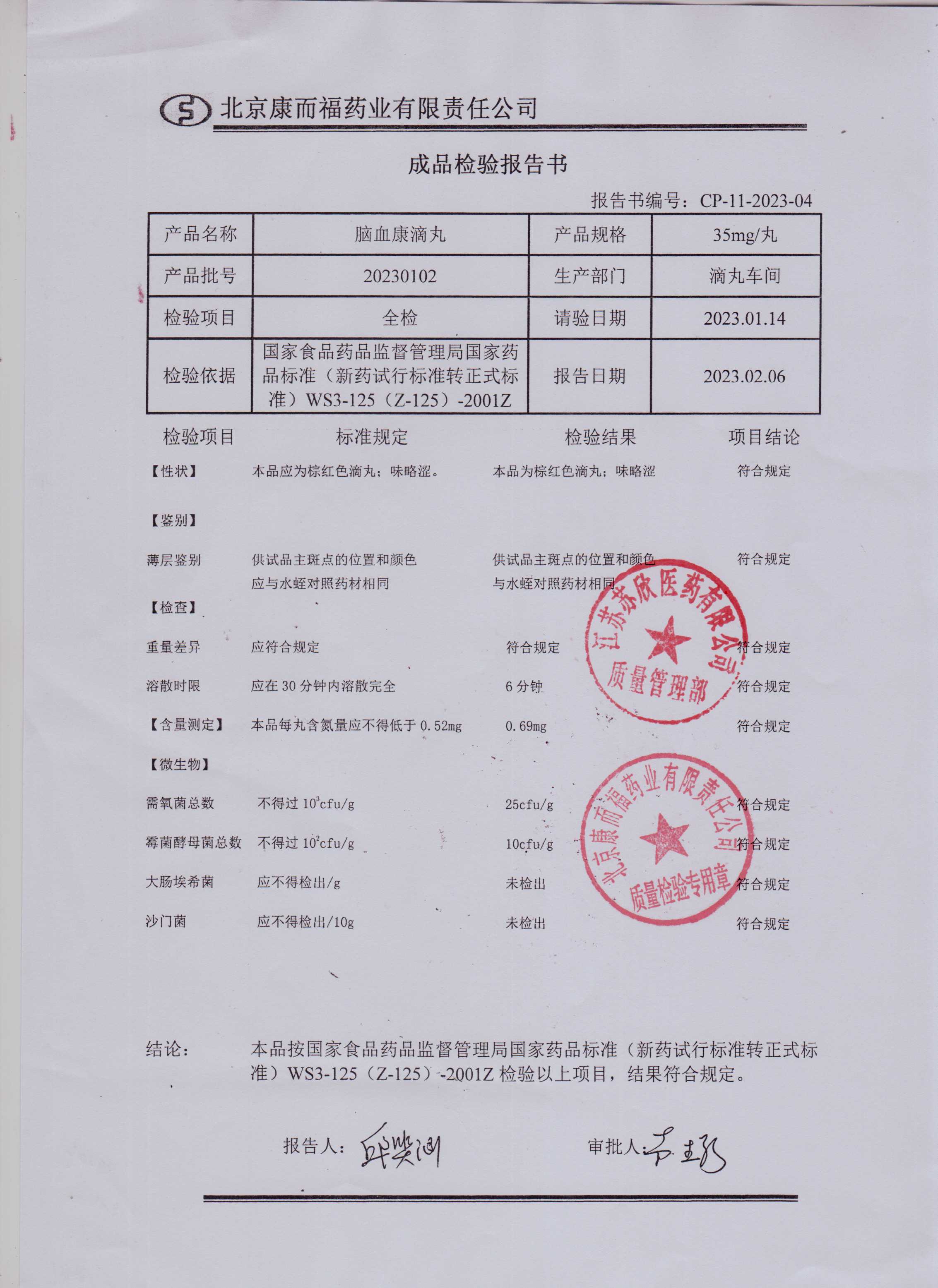 脑血康滴丸20230102