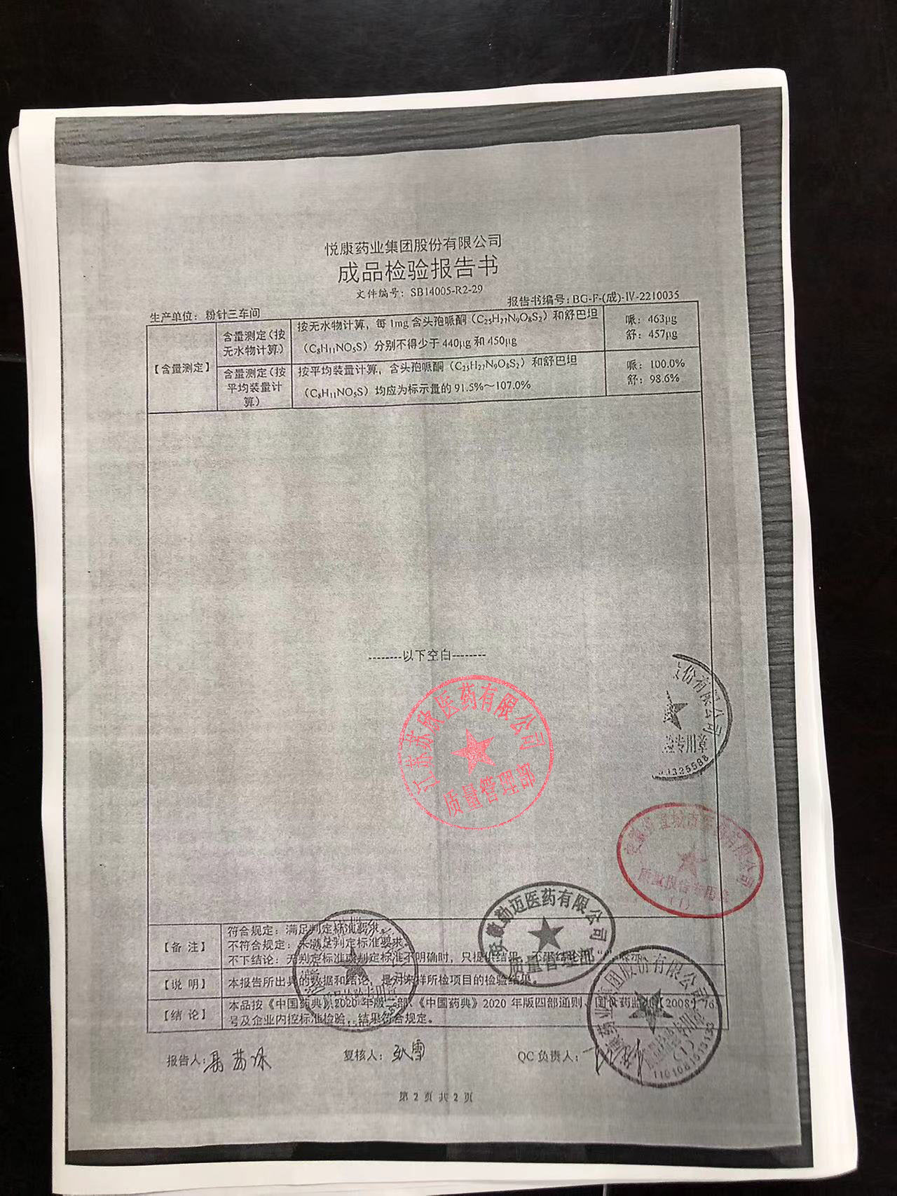 注射用头孢哌酮钠舒巴坦钠00720939(2)