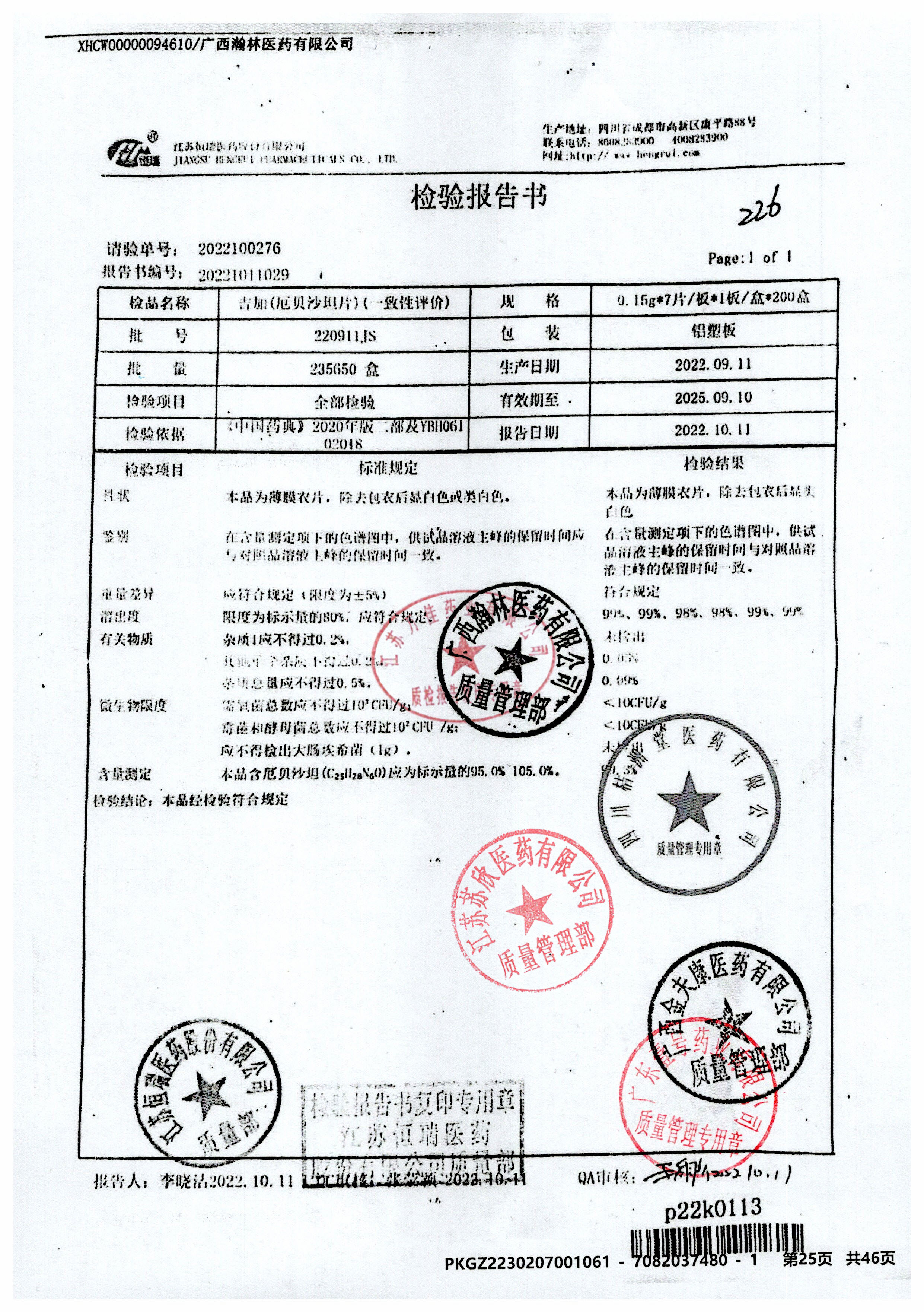 厄贝沙坦片(吉加)220911JS