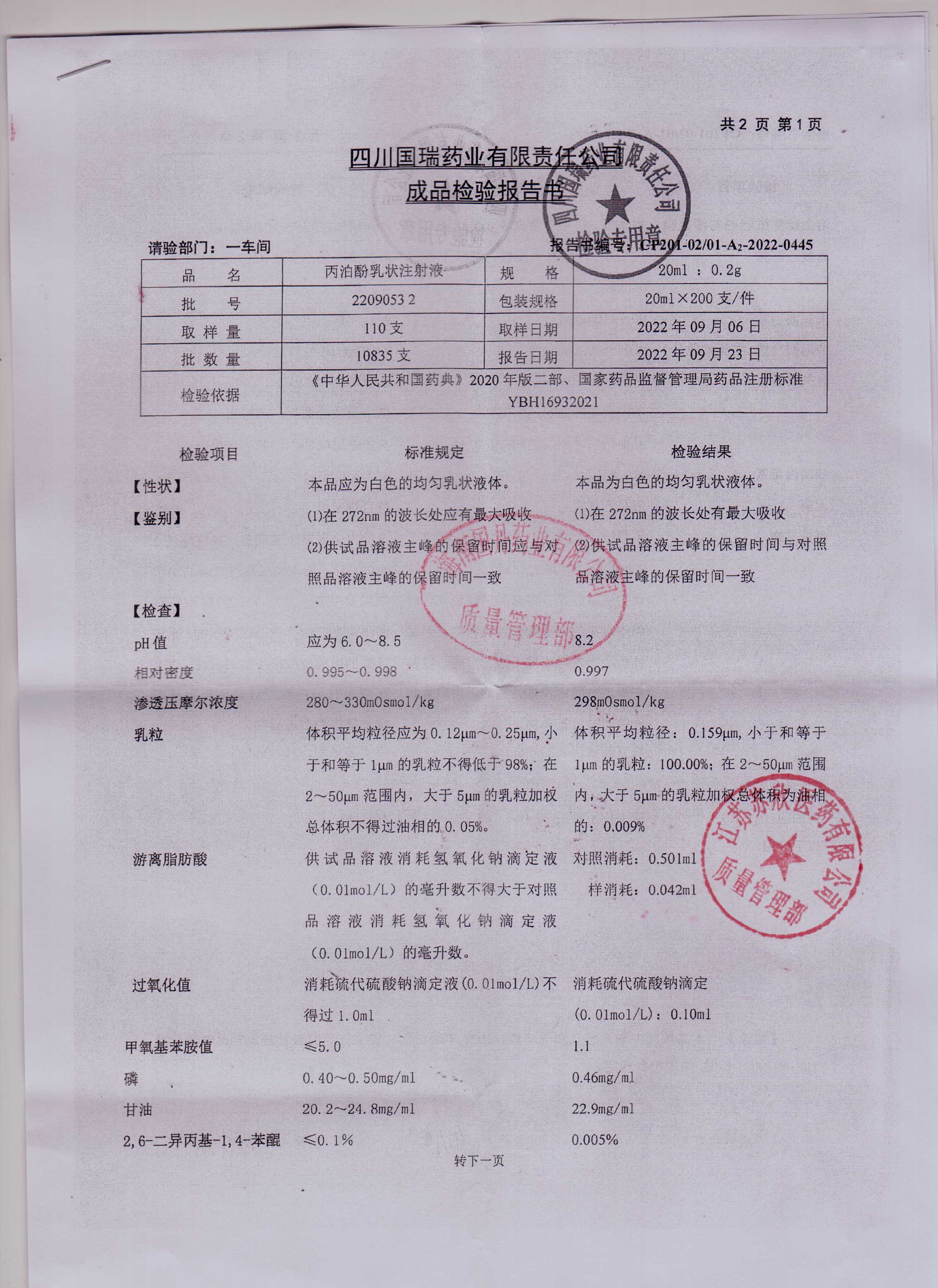 丙泊酚乳状注射液22090532(1)