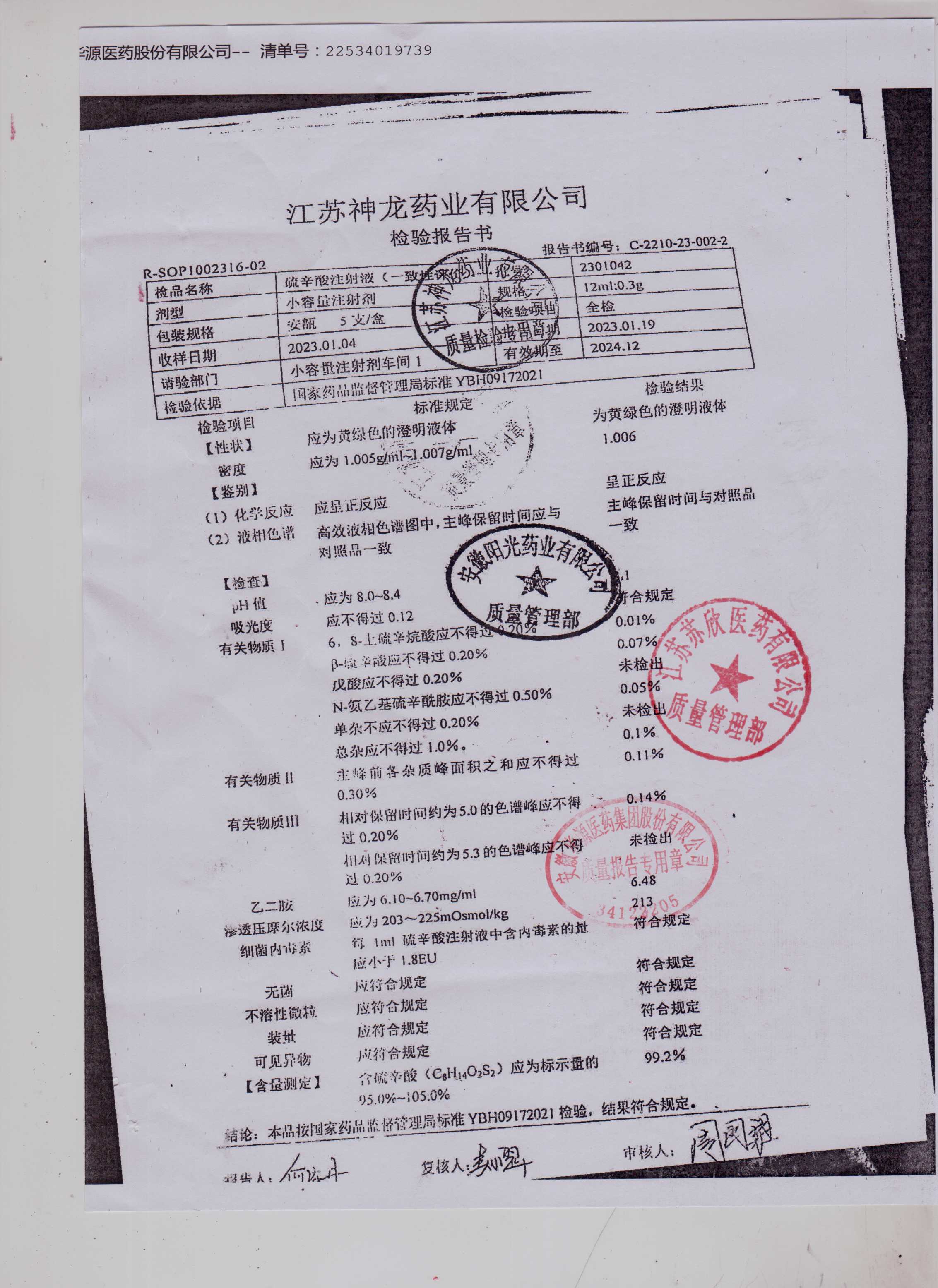 硫辛酸注射液2301042
