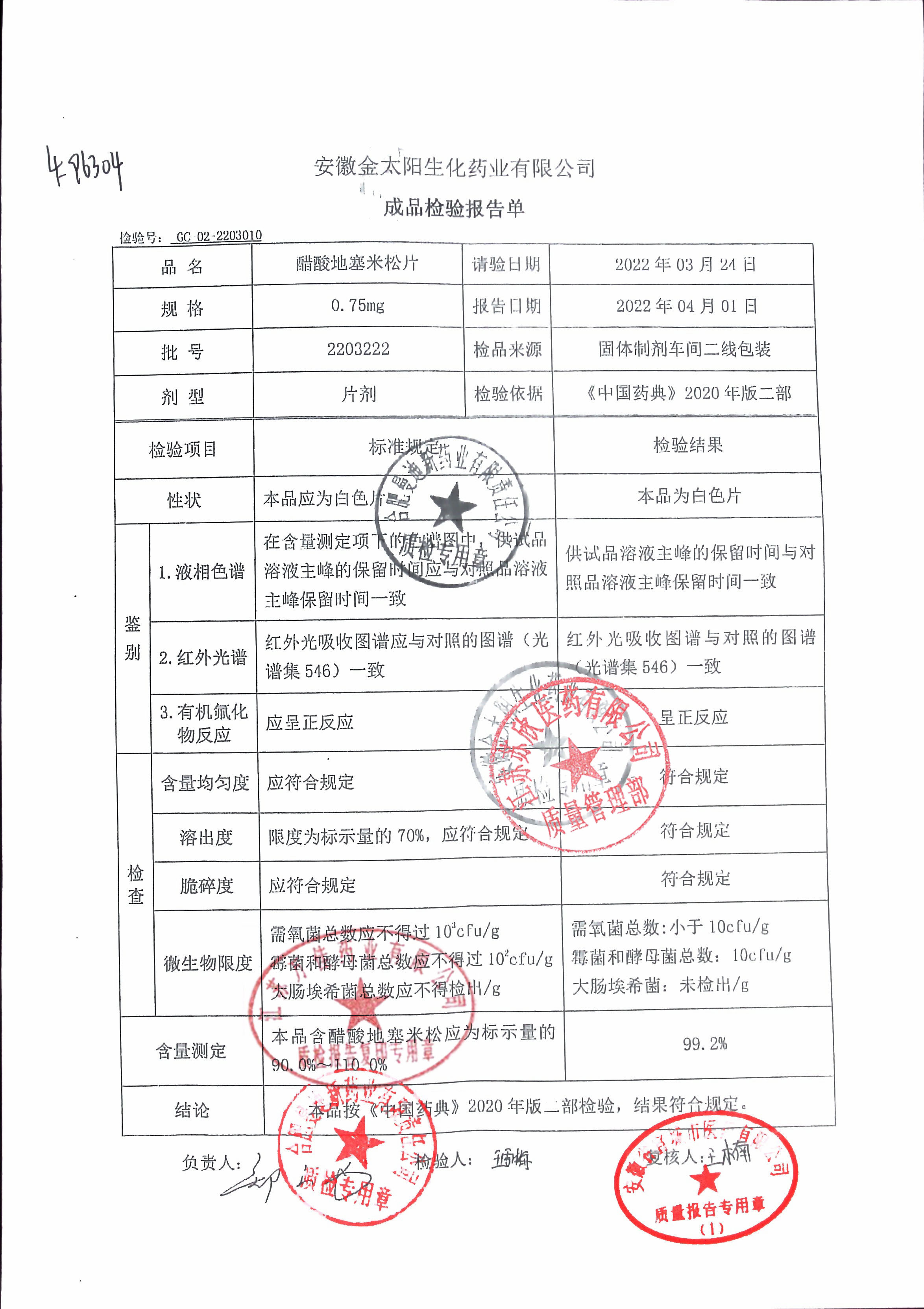 醋酸地塞米松片2203222
