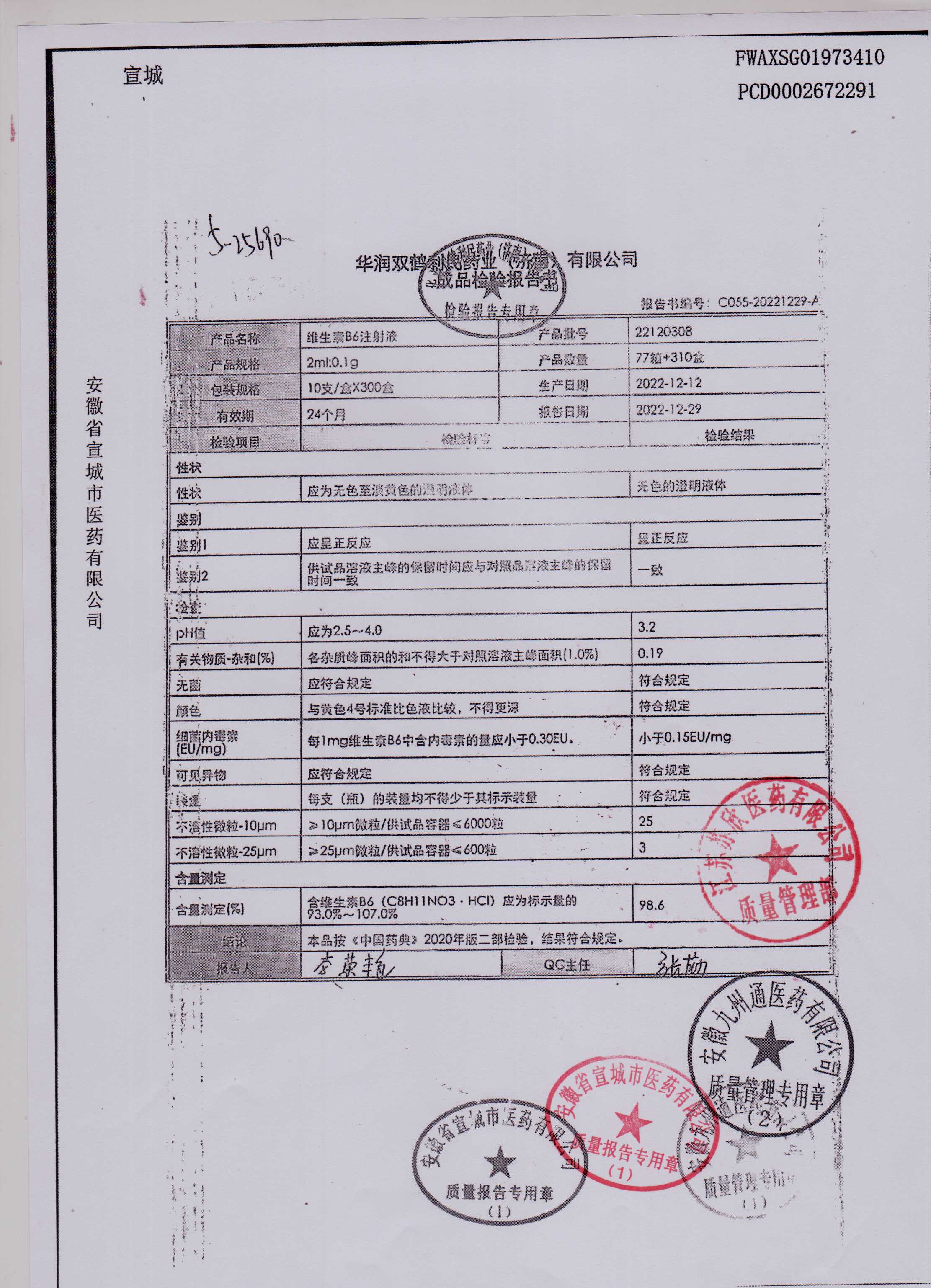 维生素B6注射液22120308