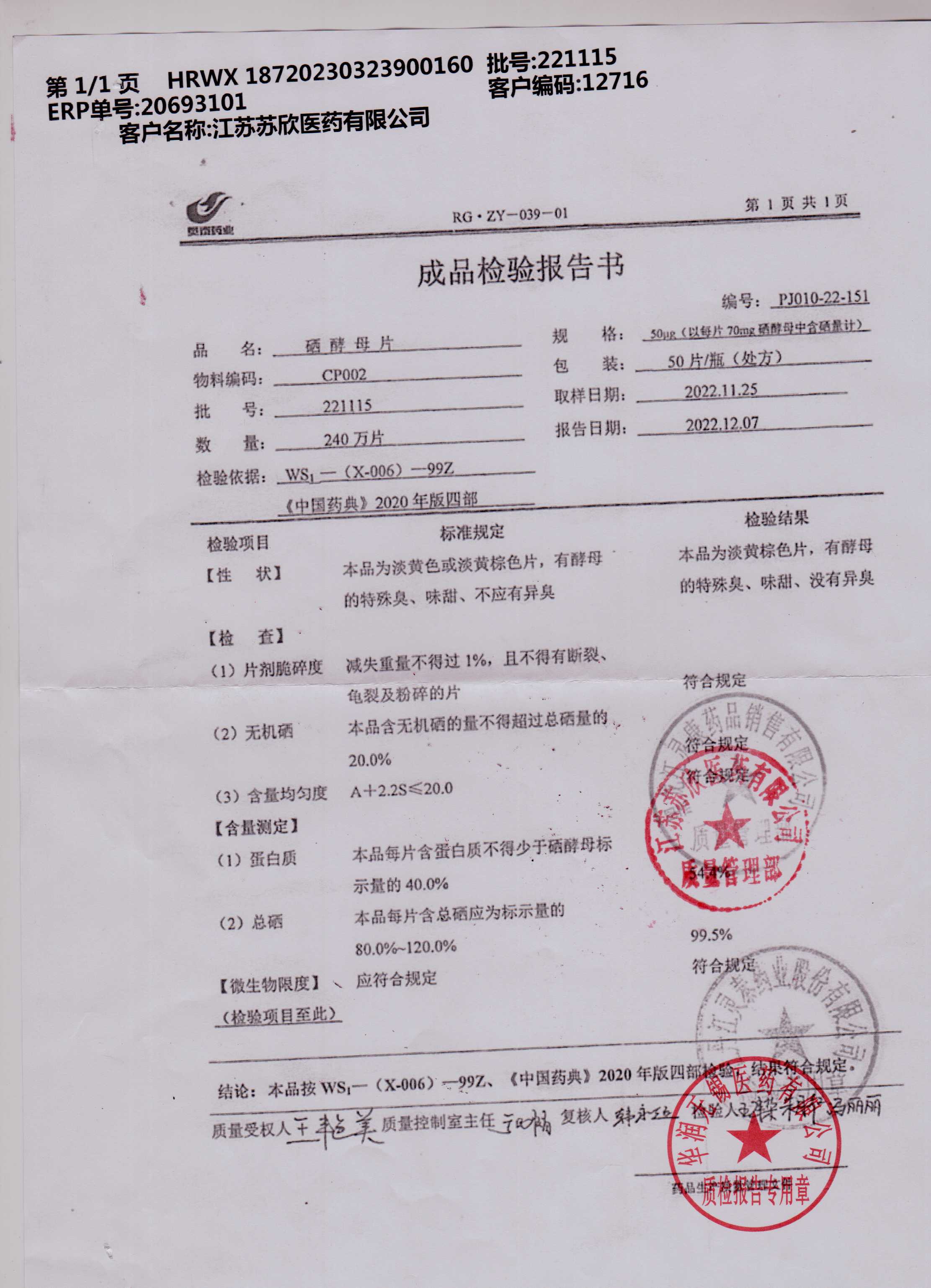 硒酵母片221115