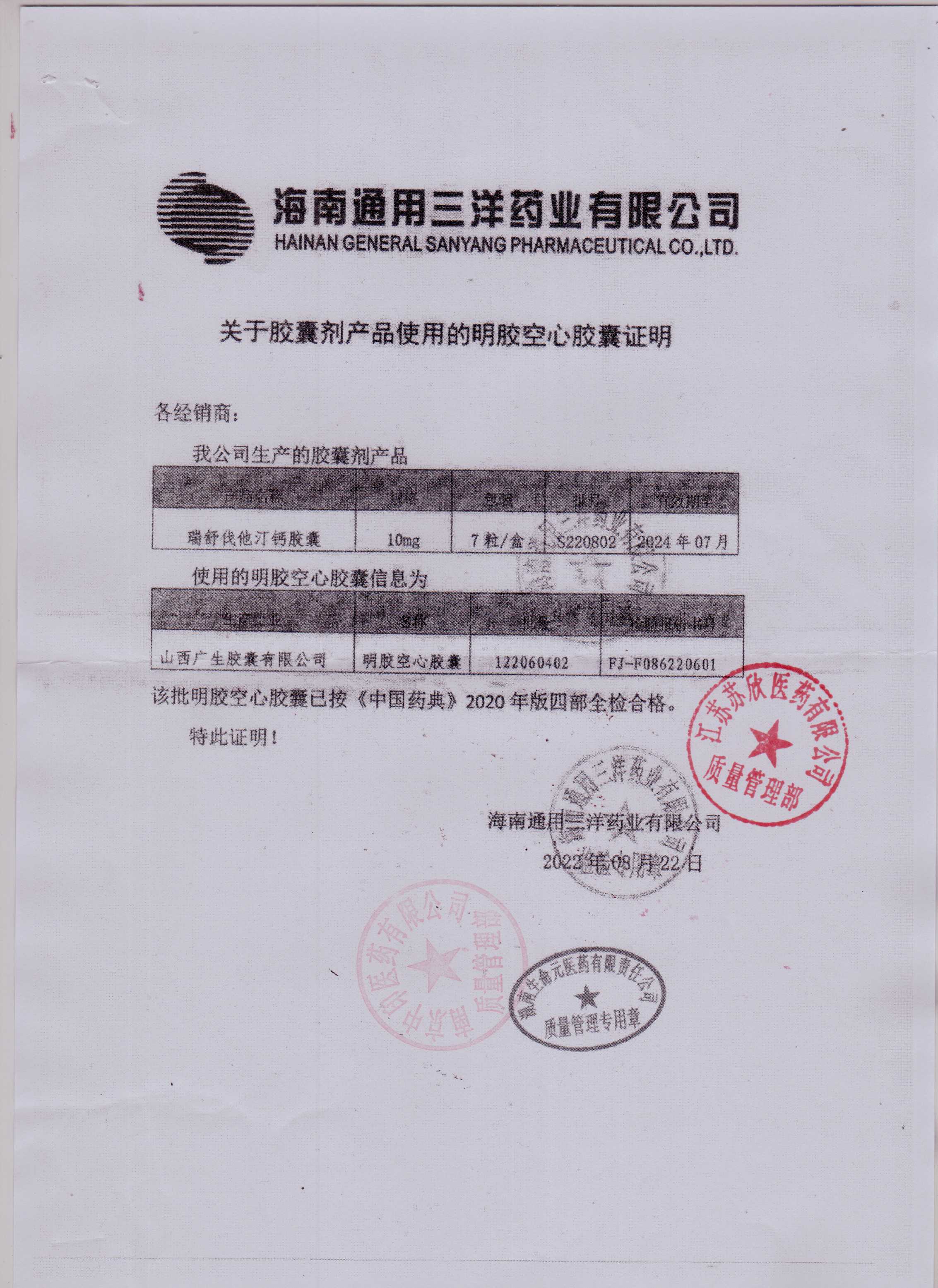 瑞舒伐他汀钙胶囊S220802(3)