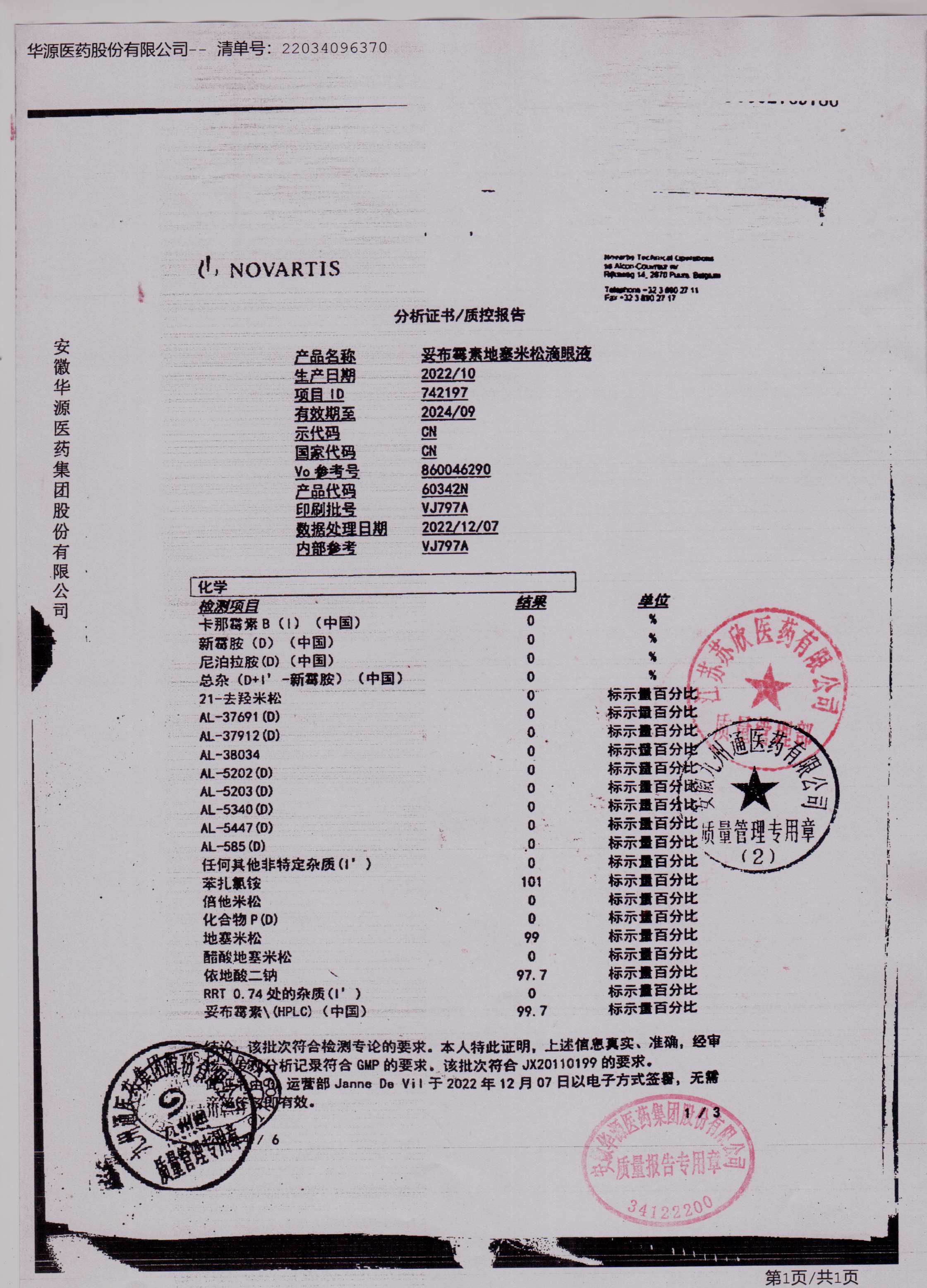 妥布霉素地塞米松滴眼液VJ797A(1)