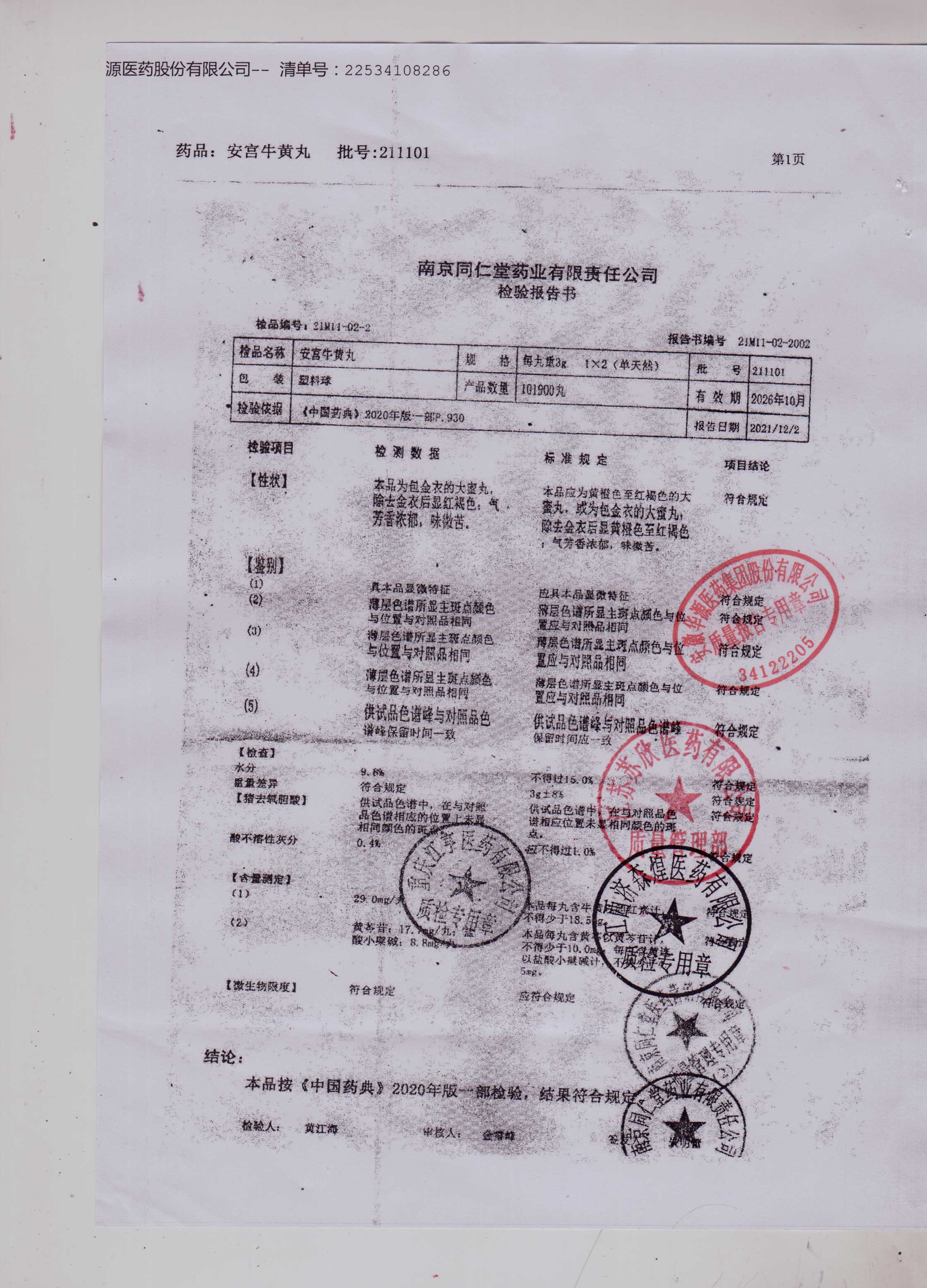 安宫牛黄丸211101