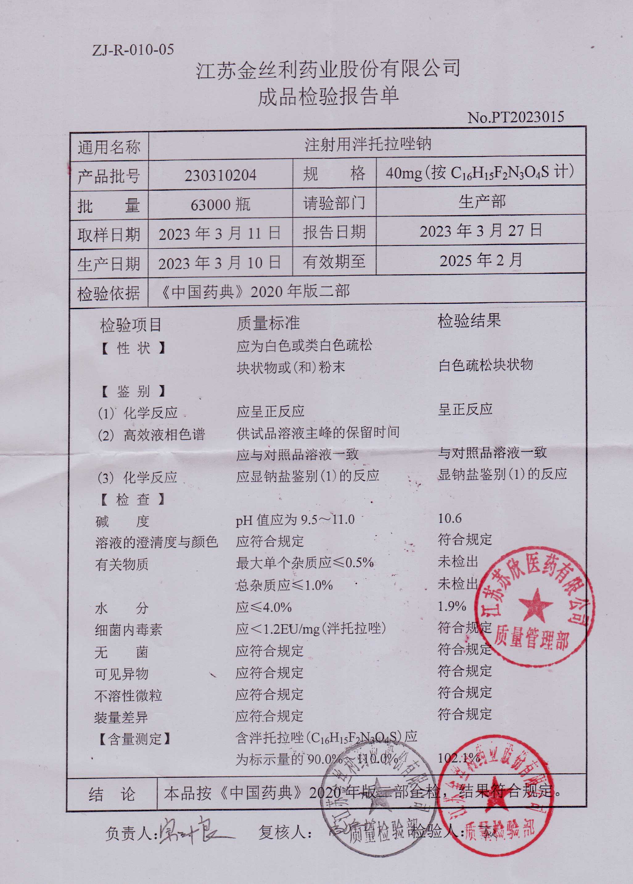 注射用泮托拉唑钠230310204