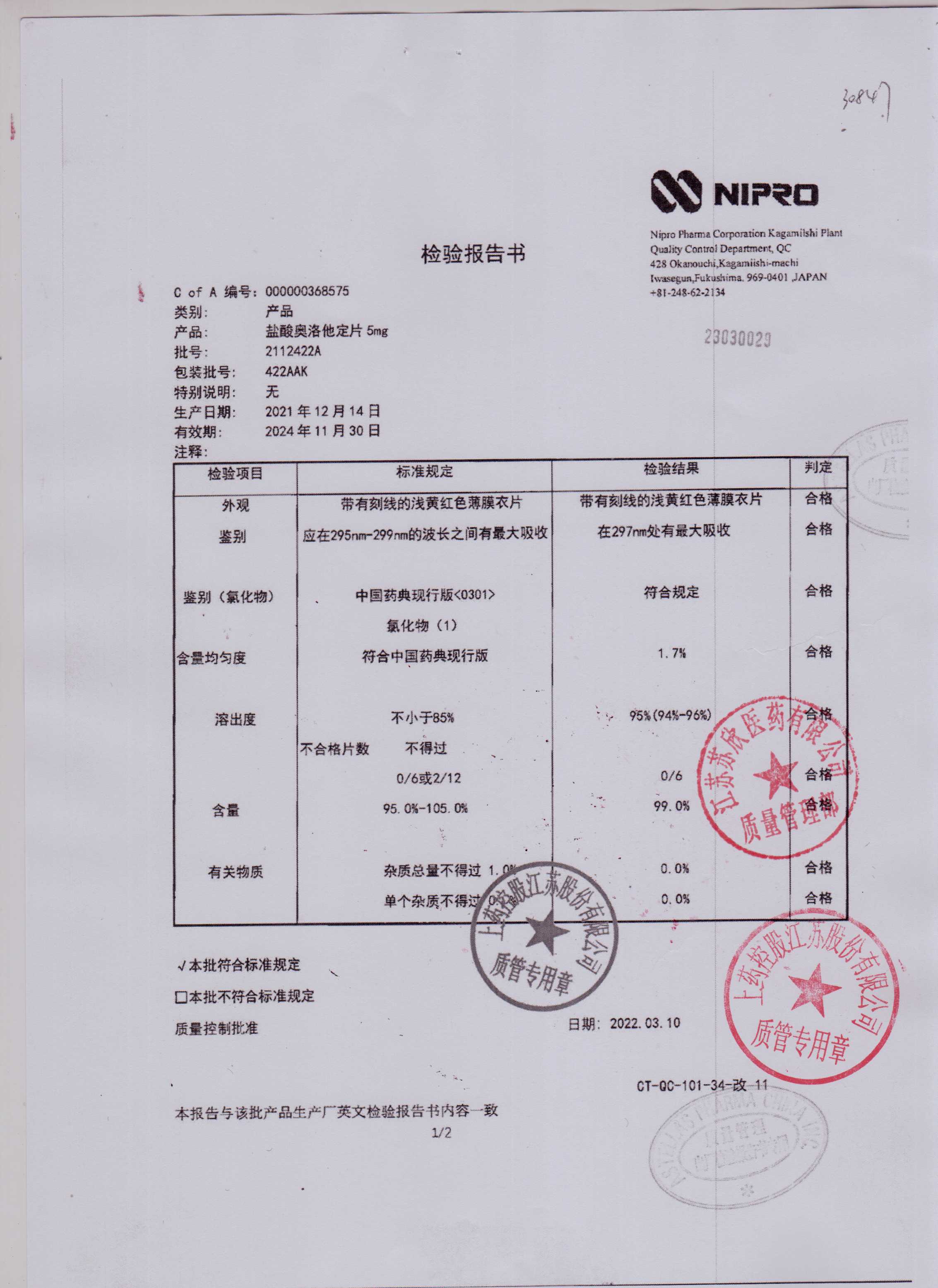 盐酸奥洛他定片422AAK(2)