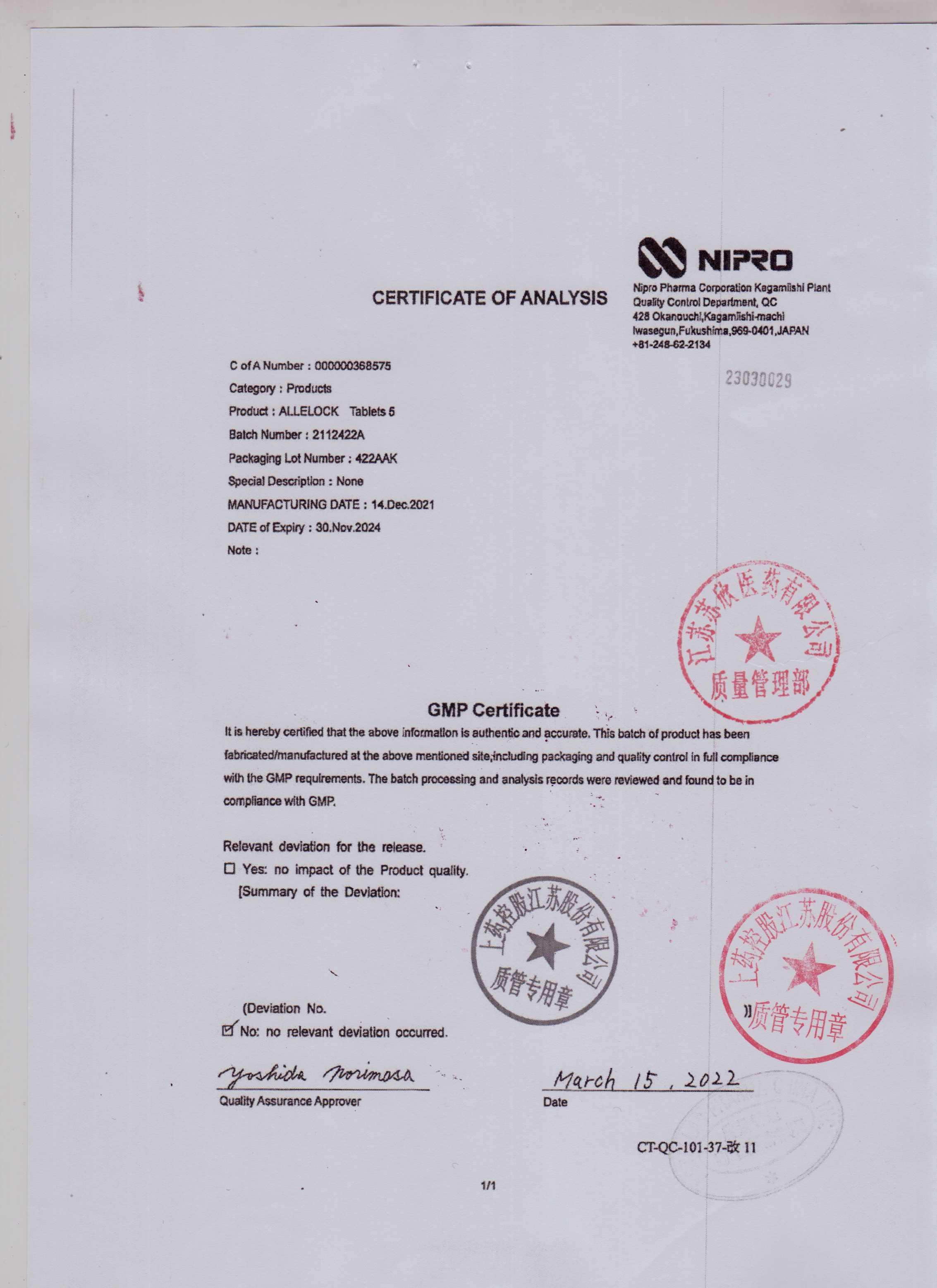 >> 检验报告书 >> 检验报告书