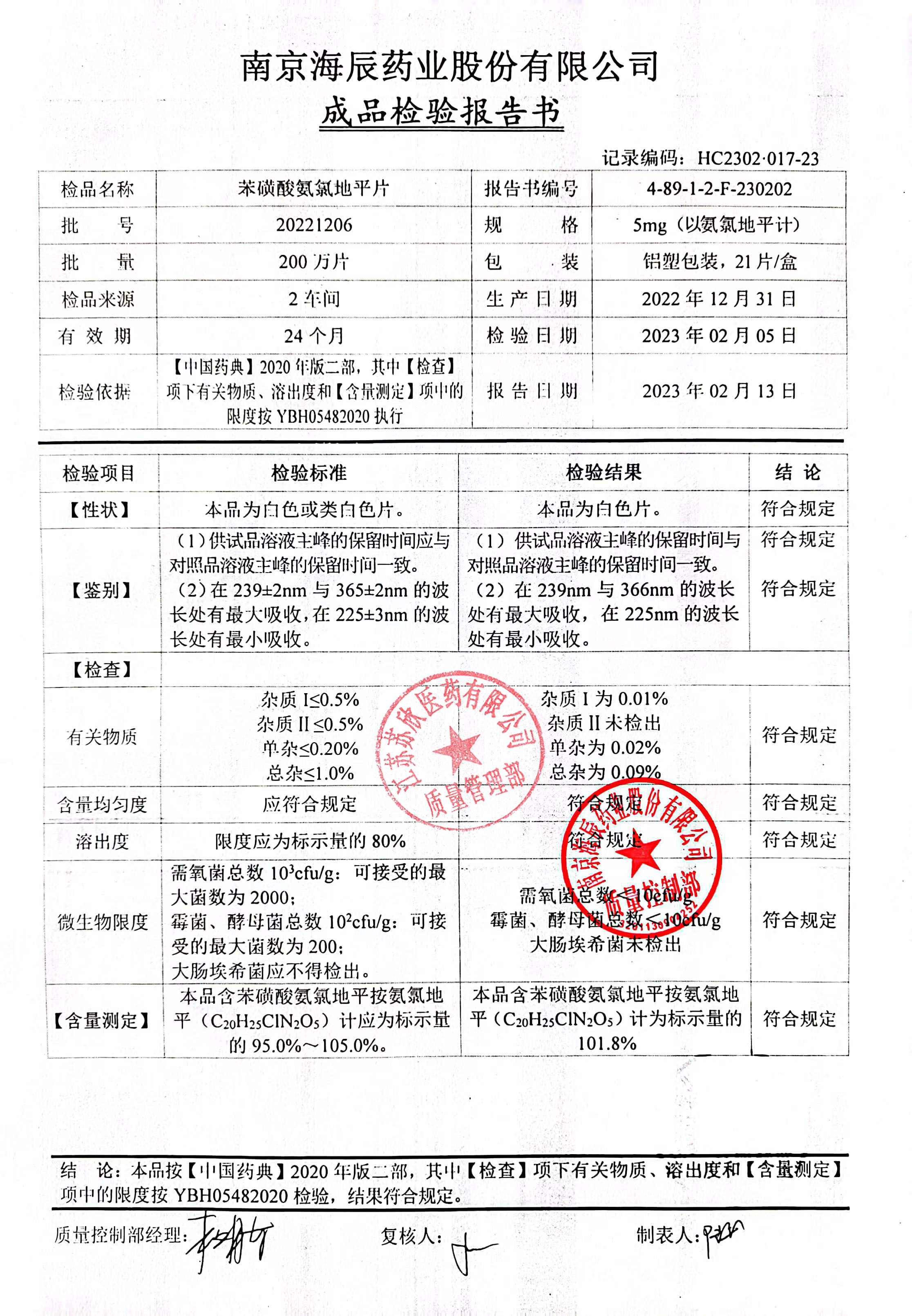 苯磺酸氨氯地平片20221206