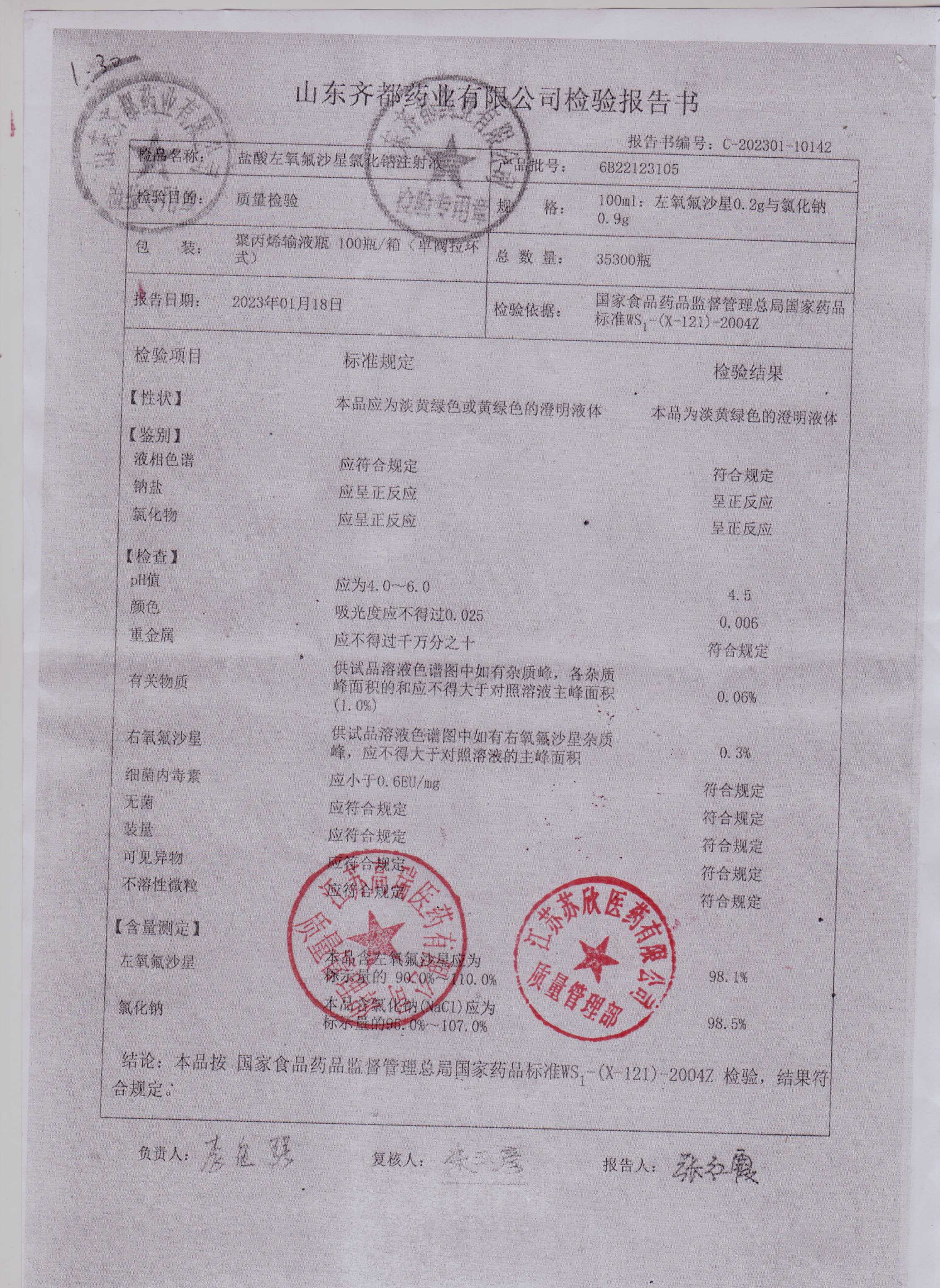 盐酸左氧氟沙星氯化钠注射液6B22123105