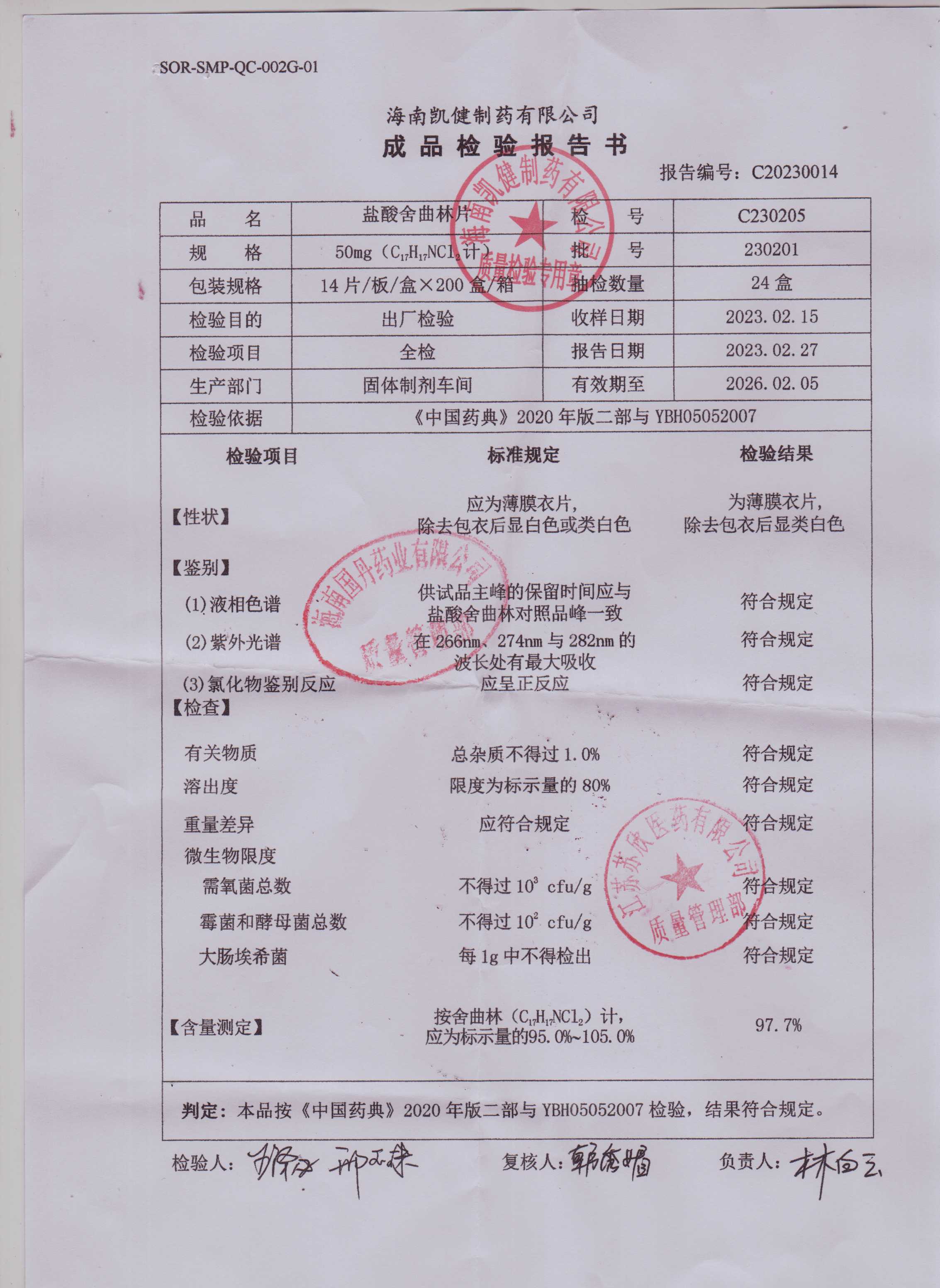 盐酸舍曲林片230201