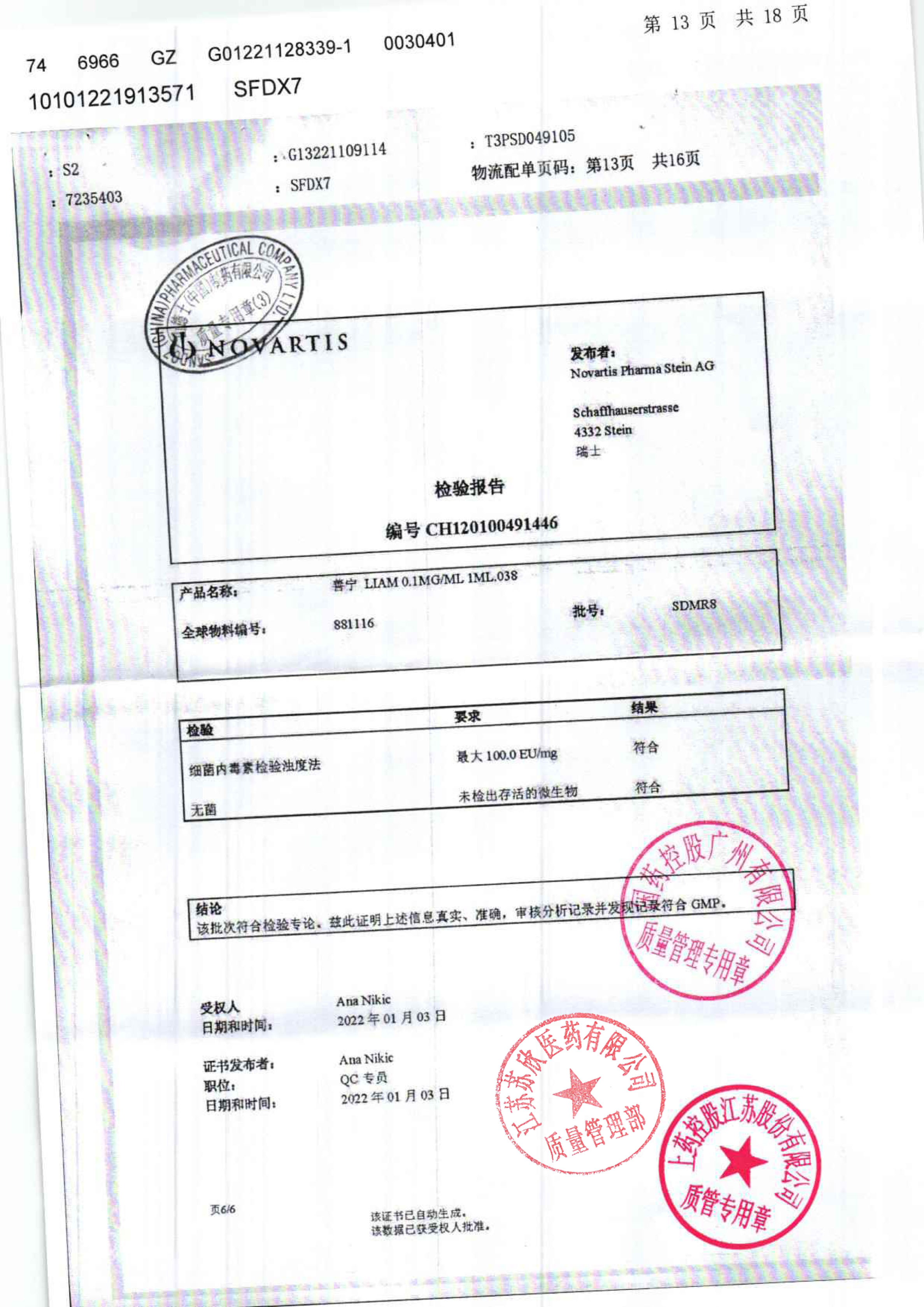 >> 检验报告书 >> 检验报告书