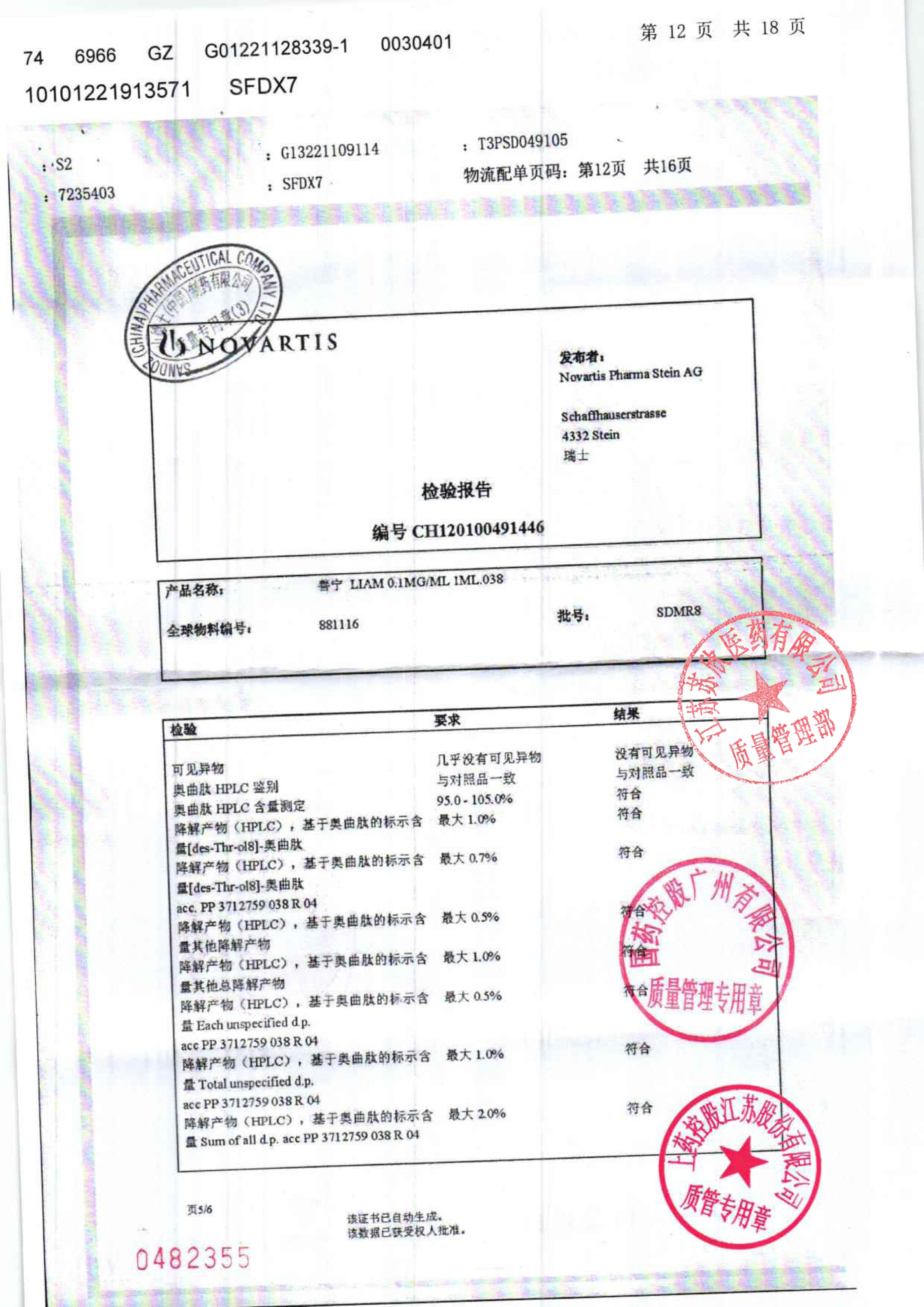 醋酸奥曲肽注射液(善宁)SFDX7(7)