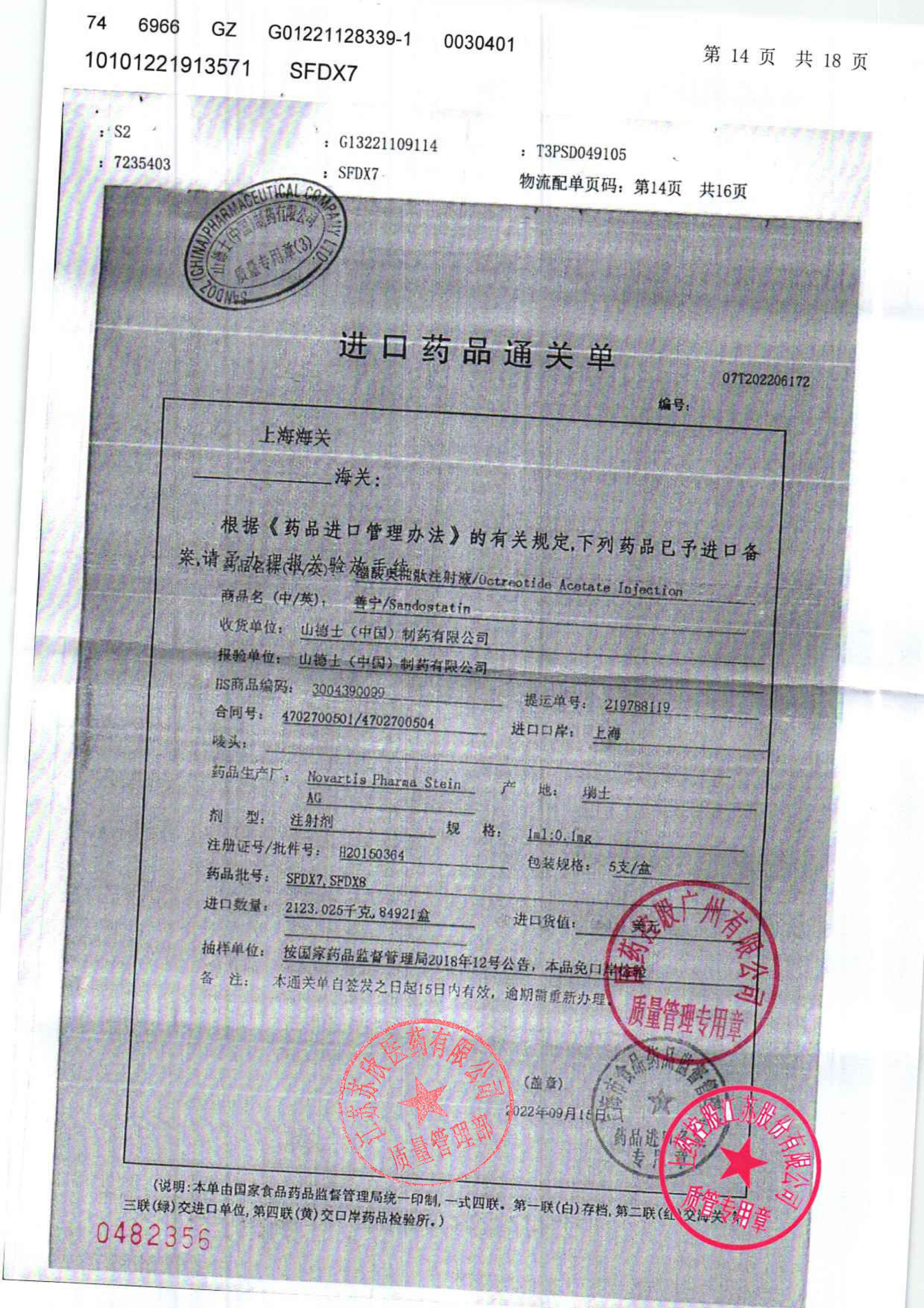 醋酸奥曲肽注射液(善宁)SFDX7(8)