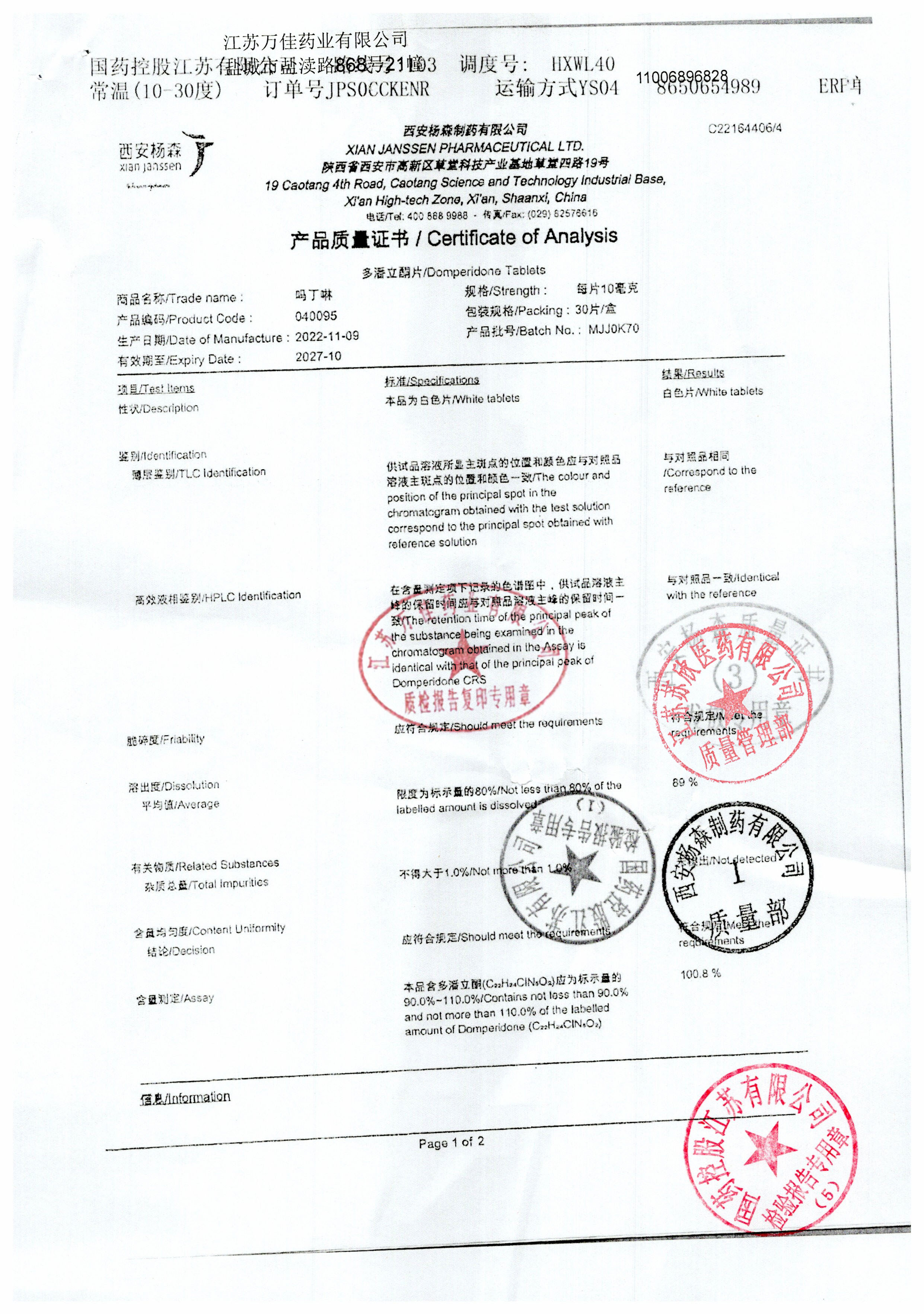多潘立酮片(吗丁啉)MJJ0K70(1)