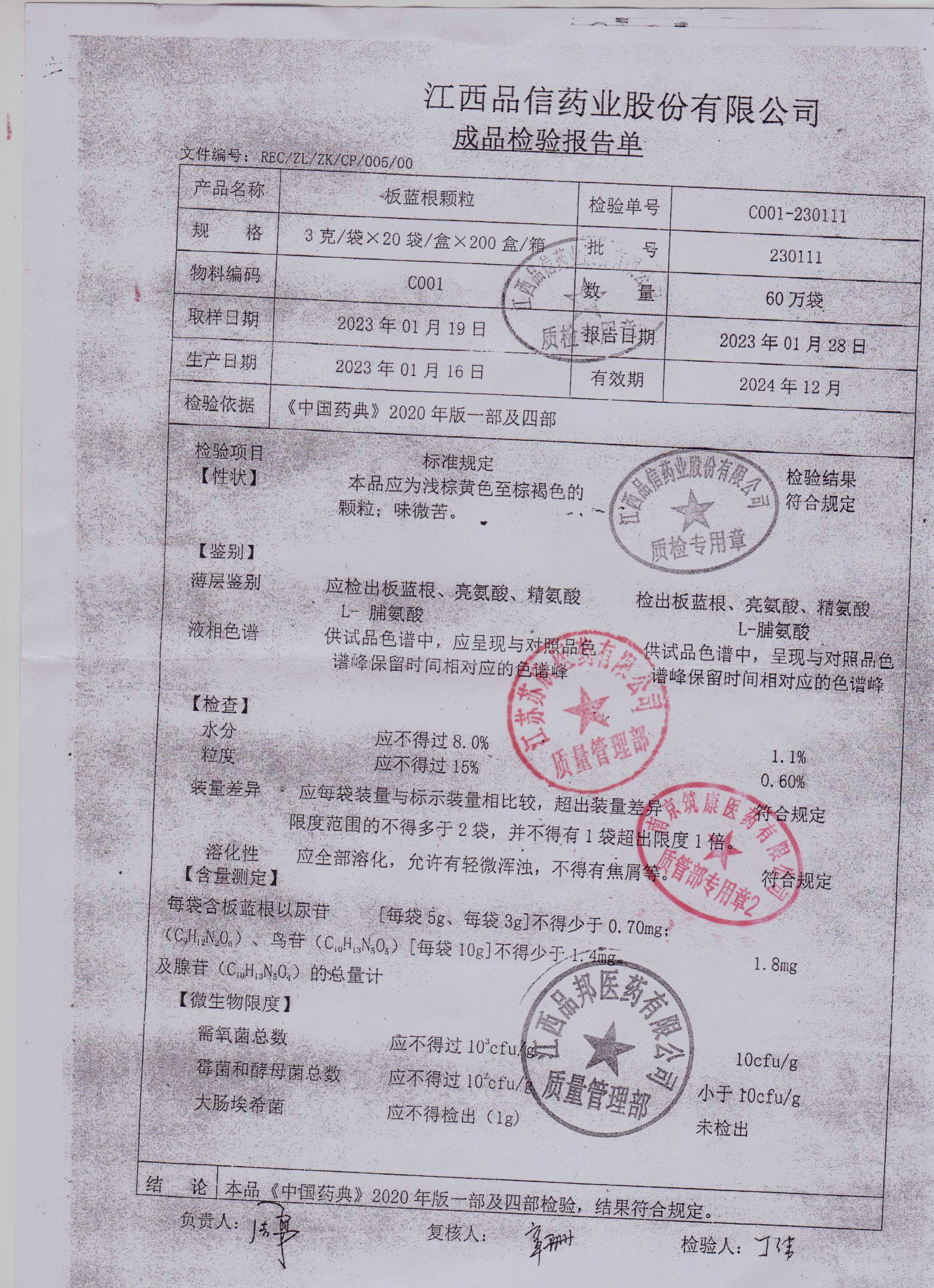 板蓝根颗粒230111