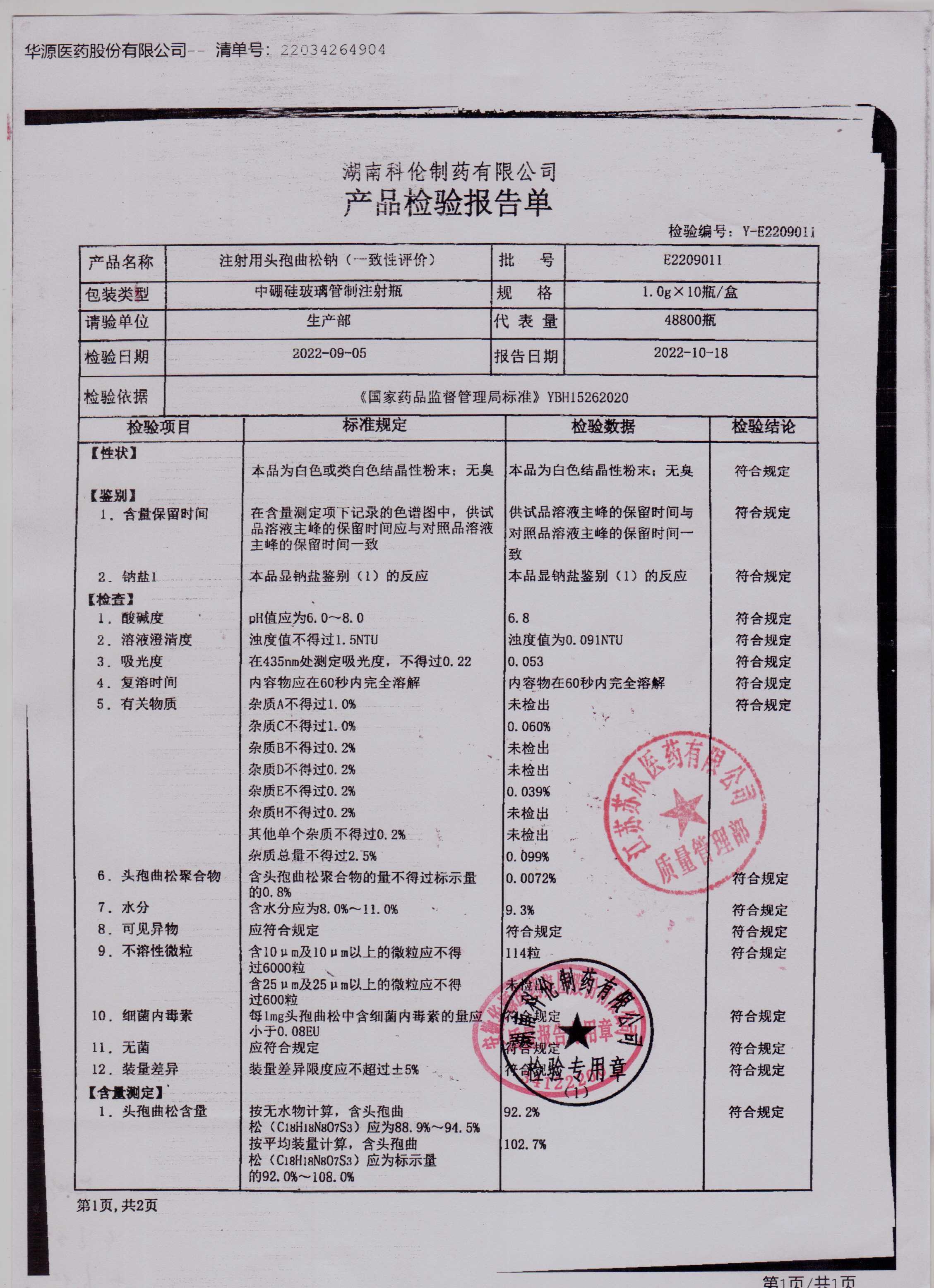 注射用头孢曲松钠E2209011(1)