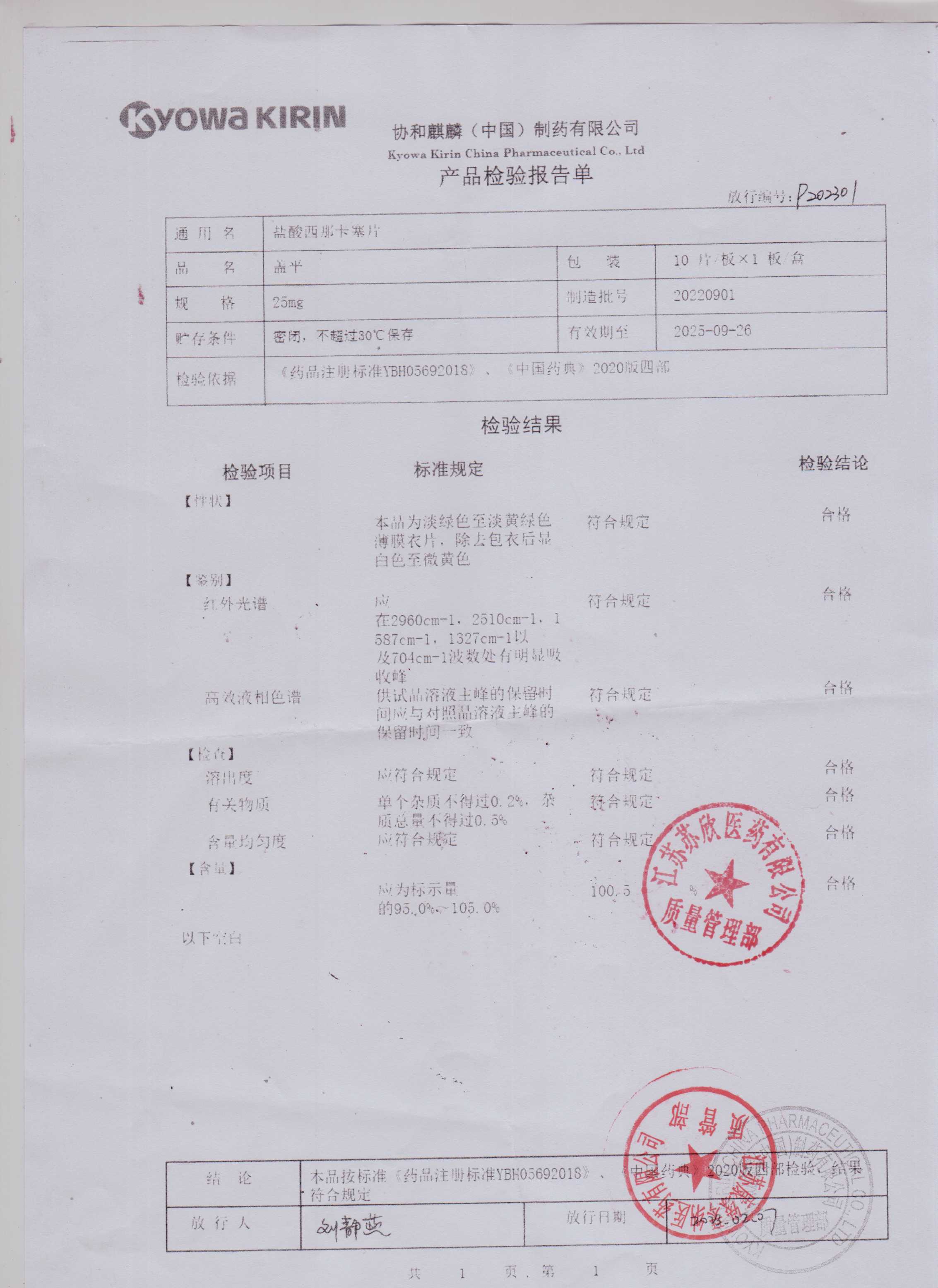 盐酸西那卡塞片20220901