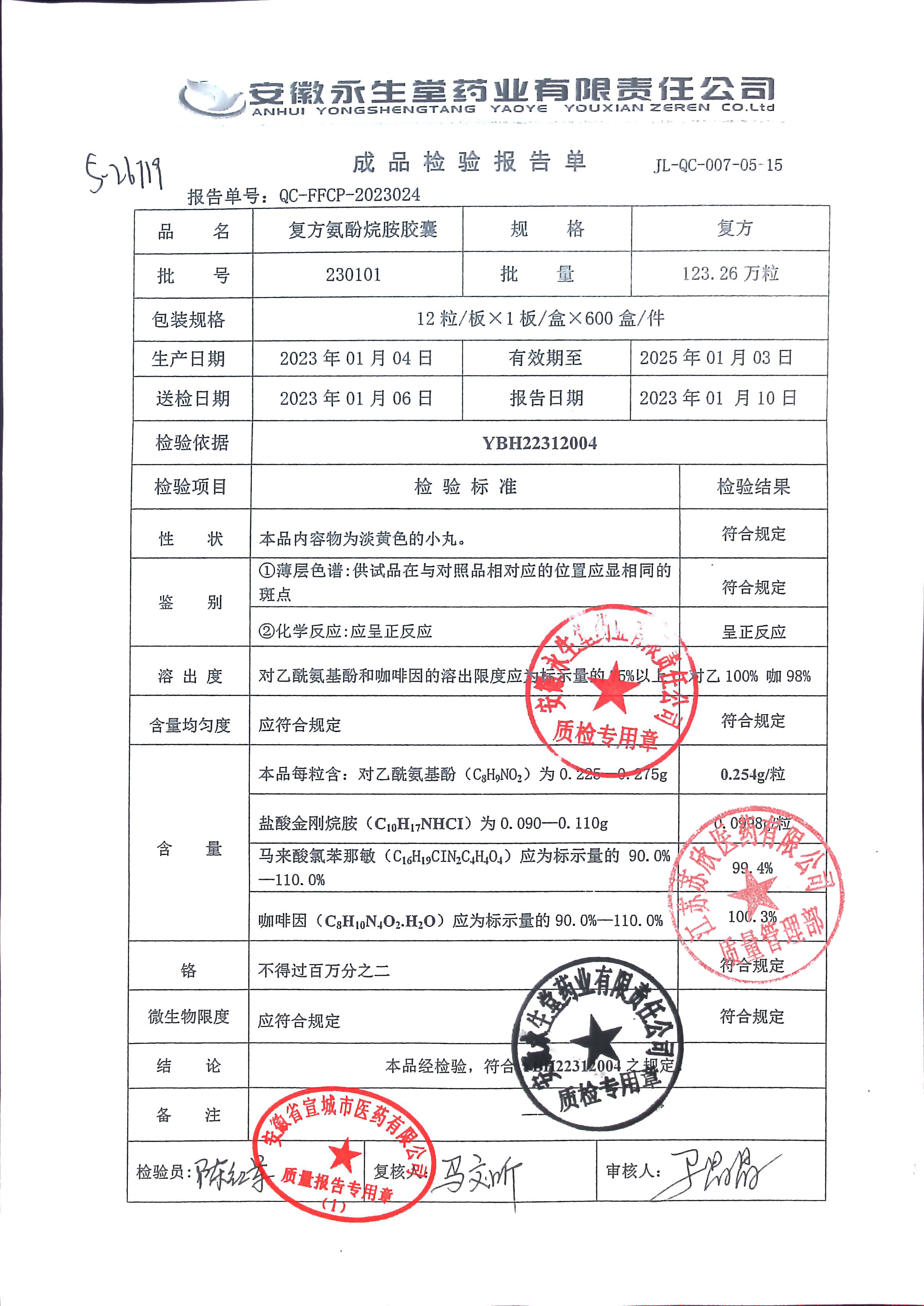 复方氨酚烷胺胶囊230101