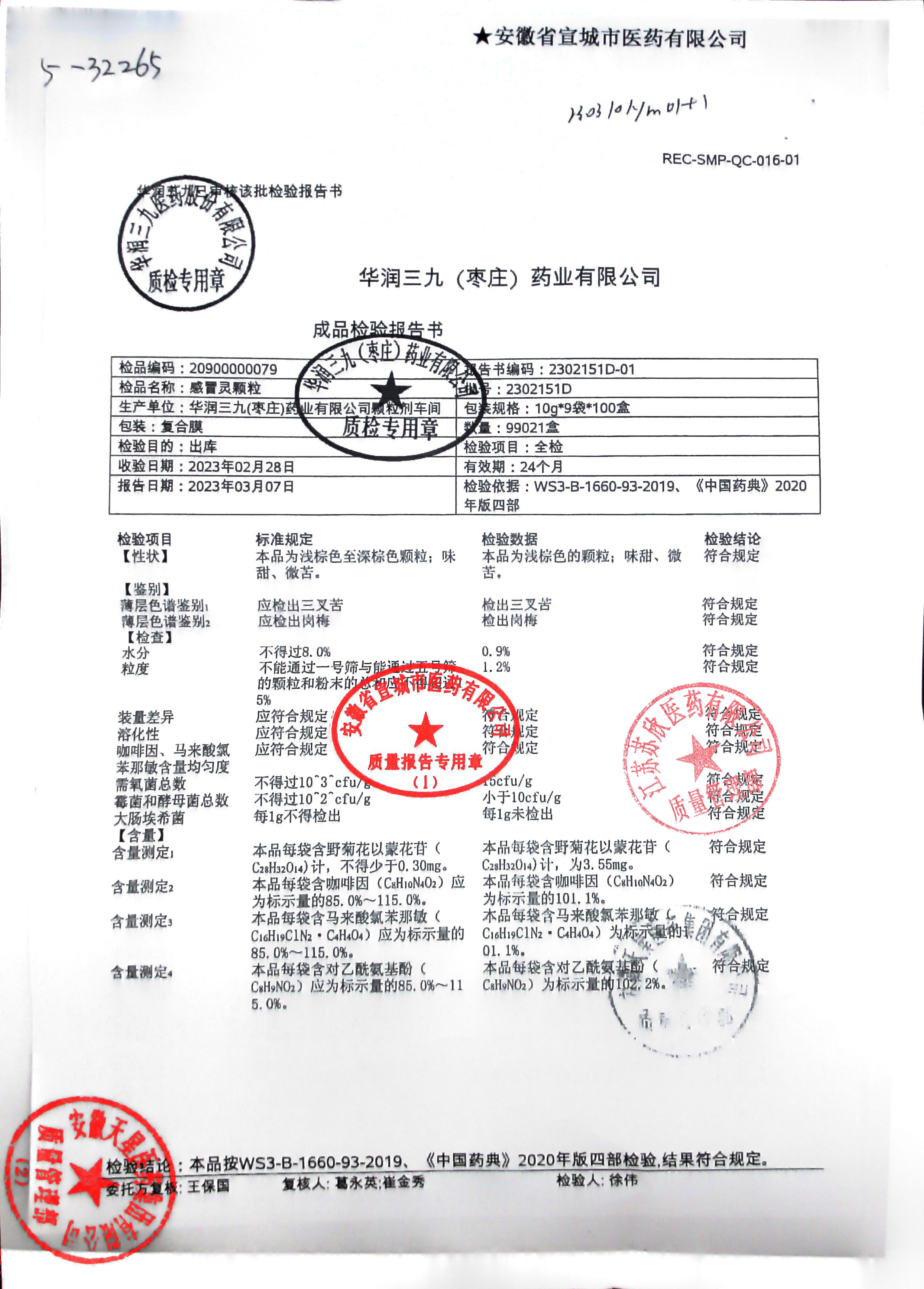 感冒灵颗粒2302151D