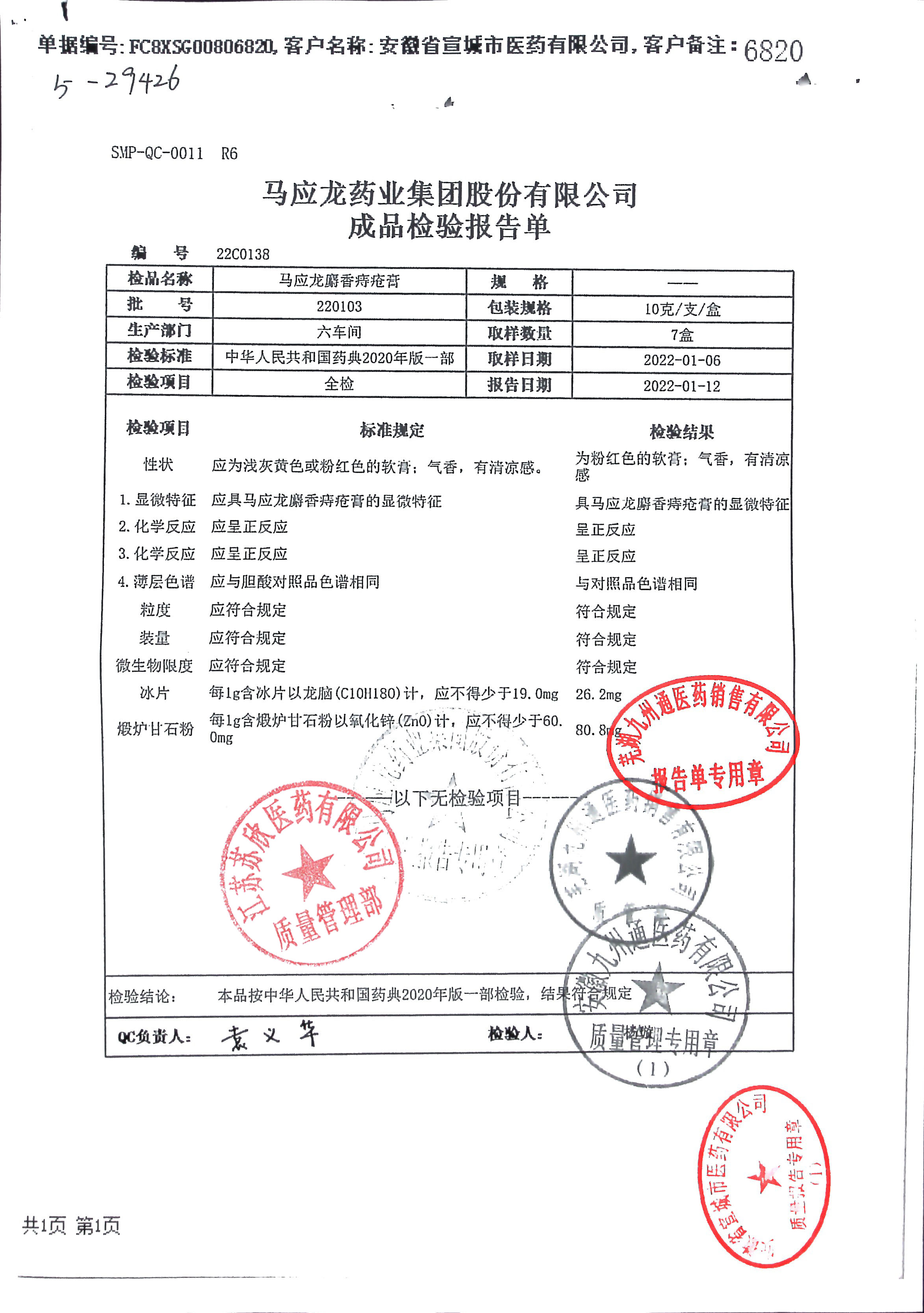 马应龙麝香痔疮膏220103
