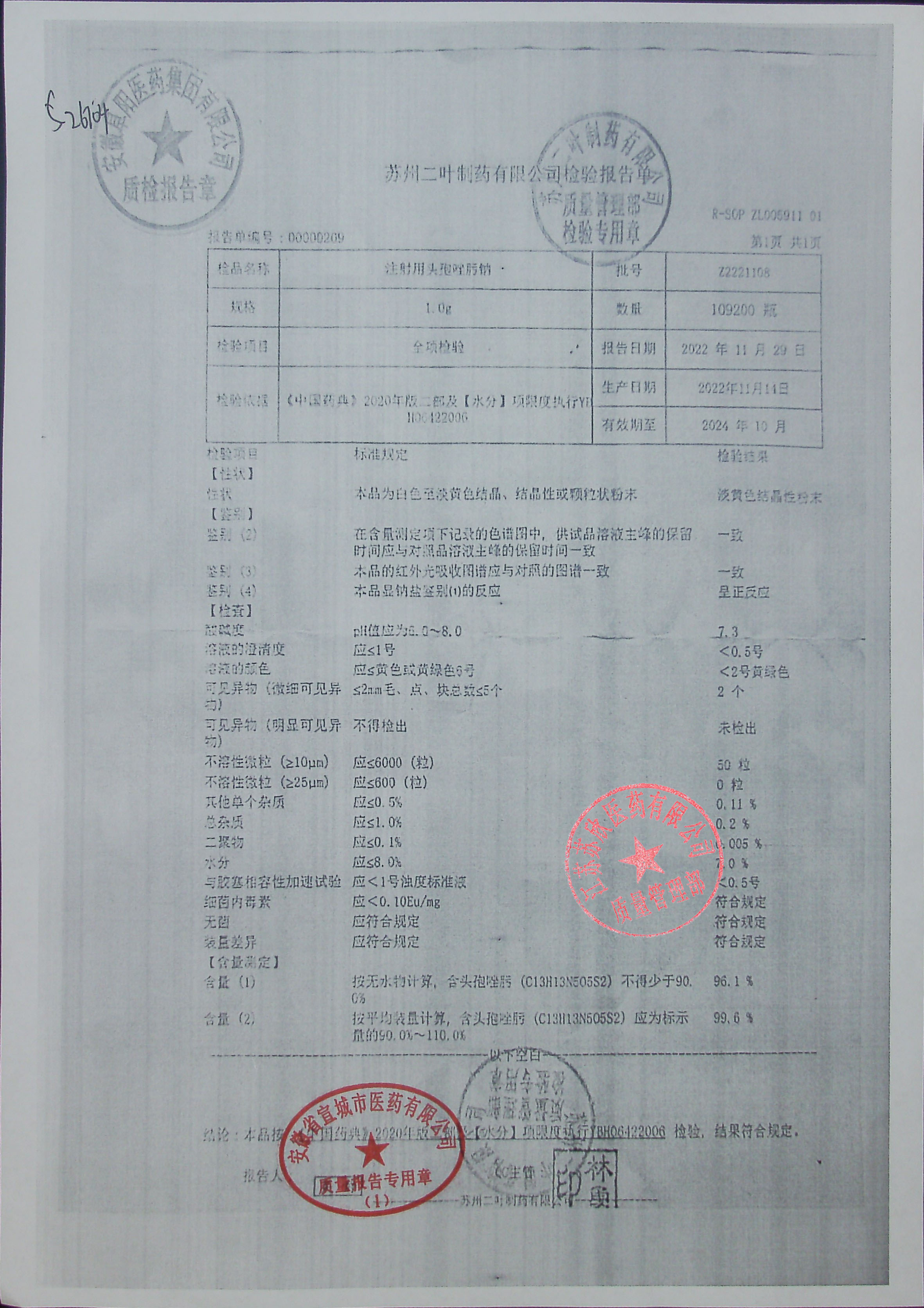 注射用头孢唑肟钠Z2221108
