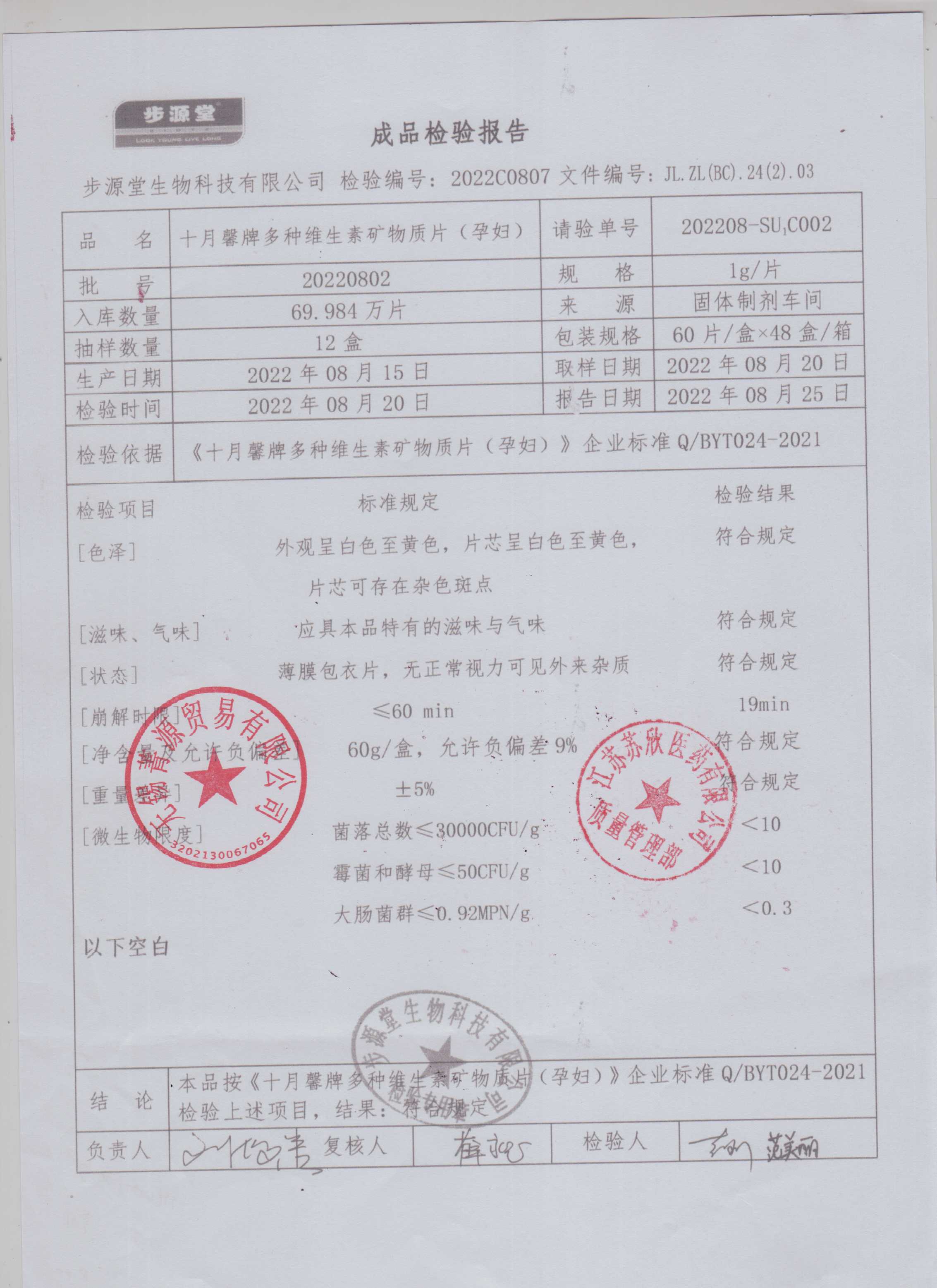 十月馨牌多种维生素矿物质片(孕妇)20220802